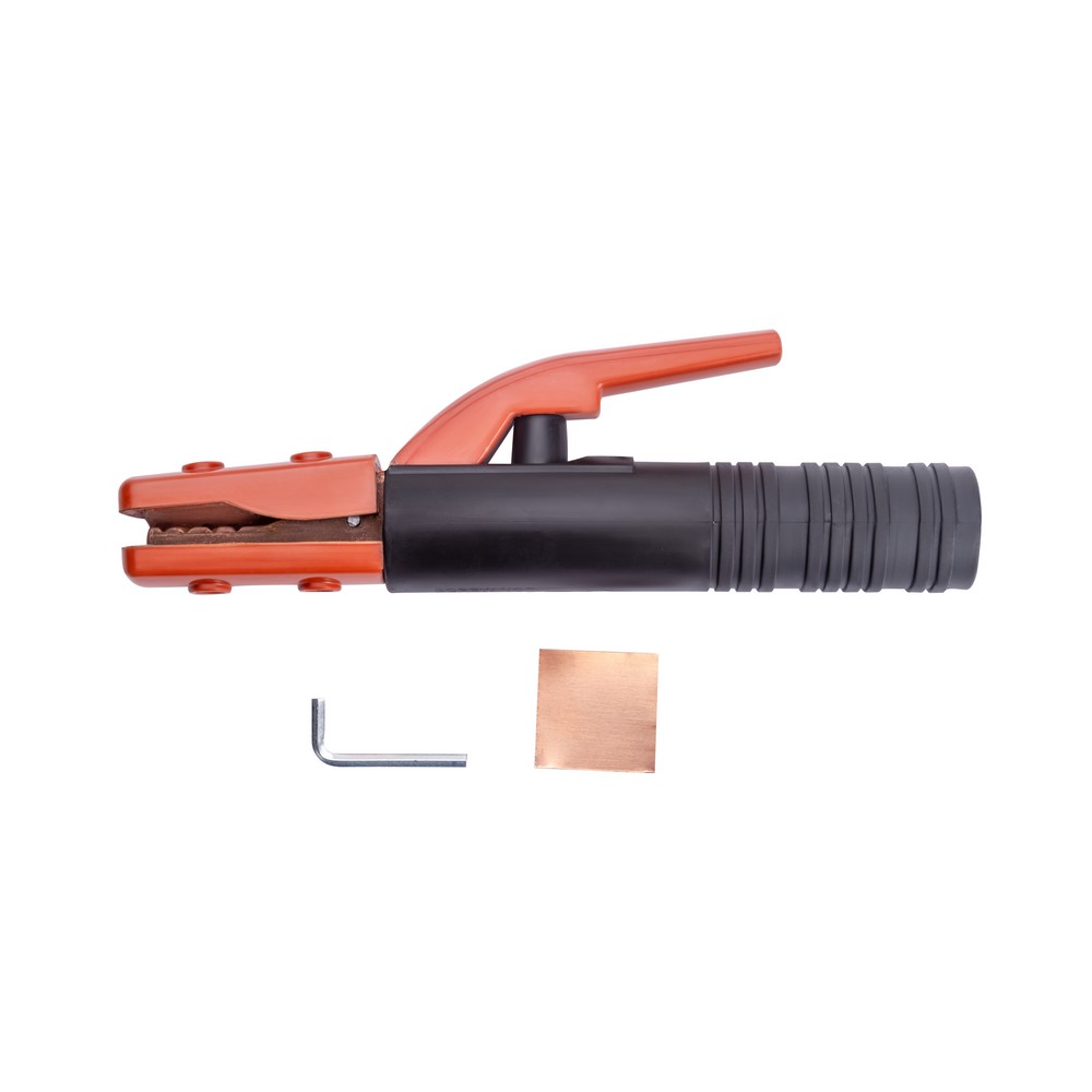 Электрододержатель ЕНМ-300А американского типа предназначен для крепления электродов при ручной электродуговой сварке. ЕНМ-300А обеспечивает установку и надёжное закрепление покрытых металлических электродов, а также освобождение огарка, чтобы при возбуждении дуги или при сварке не происходило смещения электрода в месте закрепления. Соответствует требованиям ГОСТ 14651-78 (р.3), ГОСТ 22917-78 (р.3) и обеспечивает защиту от случайного прикосновения к токопроводящим частям.ЭРГОНОМИЧНОСТЬ: Эргономичная противоскользящая рукоятка хорошо лежит в руке. Термостойкий пластик обеспечивает безопасность во время рабочего процесса.ПРЕИМУЩЕСТВА:Универсален в применении, для электродов любого типаТермостойкая изолированная ручка с рифлением, исключающая проскальзывание рукиРассчитан на высокие механические и тепловые нагрузкиЖёсткая фиксация электродов в четырёх положенияхНадёжное механическое крепление сварочного кабеля