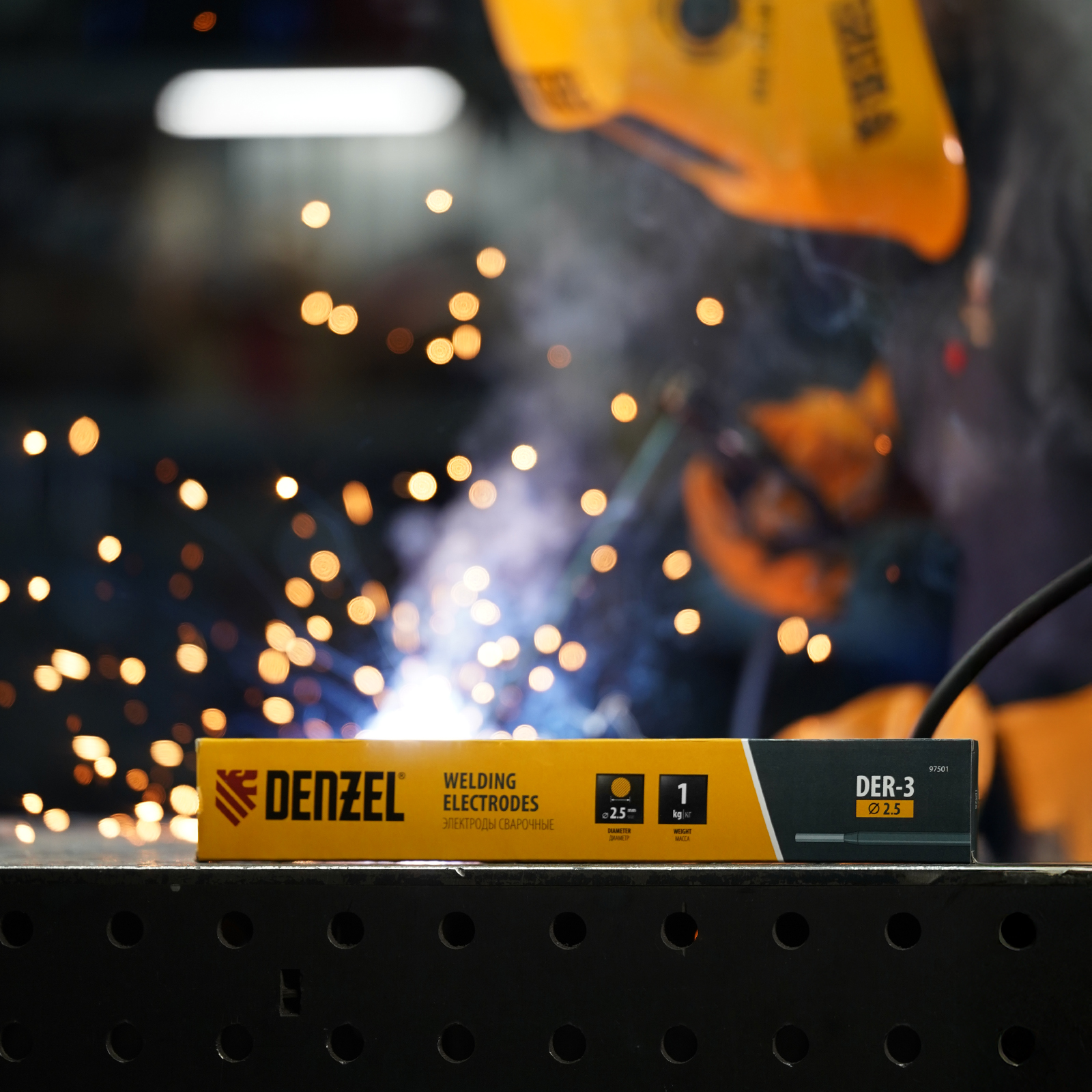 Электроды Denzel 97501 марки DER-3, диаметром 2,5 мм, с рутиловым покрытием синего цвета, 1 кг в упаковке, предназначены для ручной дуговой сварки деталей из углеродистых и низколегированных конструкционных сталей при максимальном токе 140 А. Позволяют получать соединения, устойчивые к вибрациям и воздействию агрессивных сред. Толщина обмазки выше, чем у аналогичных электродов других торговых марок, что обеспечивает высокое качество шва. Электроды используются в нефтегазовой промышленности, судо- и машиностроении, для проведения ремонтных работ, в том числе с резервуарами под давлением. Пригодятся также в быту.