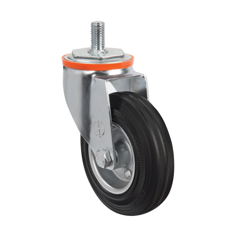 Грузоподъемность данного промышленного колеса составляет 180 кг, диаметр — 200 мм. Контактный слой изготовлен из литой черной резины, обод и кронштейн — из оцинкованной стали. Роликовый подшипник в оси обладает высокой стойкостью к радиальным нагрузкам. Модель подходит для установки на различное складское и строительное оборудование, контейнеры ТБО, может использоваться на поверхностях с уклонами и неровностями, во влажной среде.