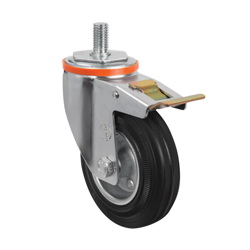 Грузоподъемность данного промышленного колеса составляет 60 кг, диаметр — 80 мм. Контактный слой изготовлен из литой черной резины, обод и кронштейн — из оцинкованной стали. Роликовый подшипник в оси обладает высокой стойкостью к радиальным нагрузкам. Модель подходит для установки на различное складское и строительное оборудование, контейнеры ТБО, может использоваться на поверхностях с уклонами и неровностями, во влажной среде.