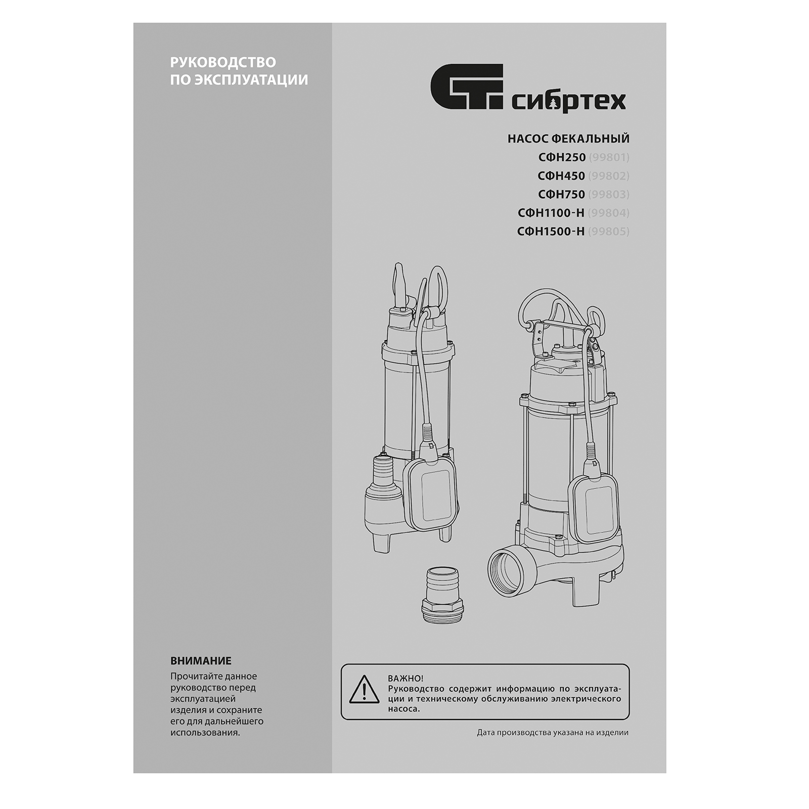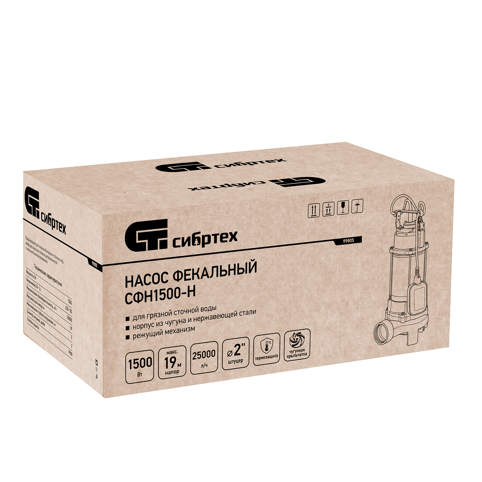 Фекальный насос СФН1500-Н, 1500 Вт, напор 19 м, 25000 л/ч, нож Сибртех в Воронеже