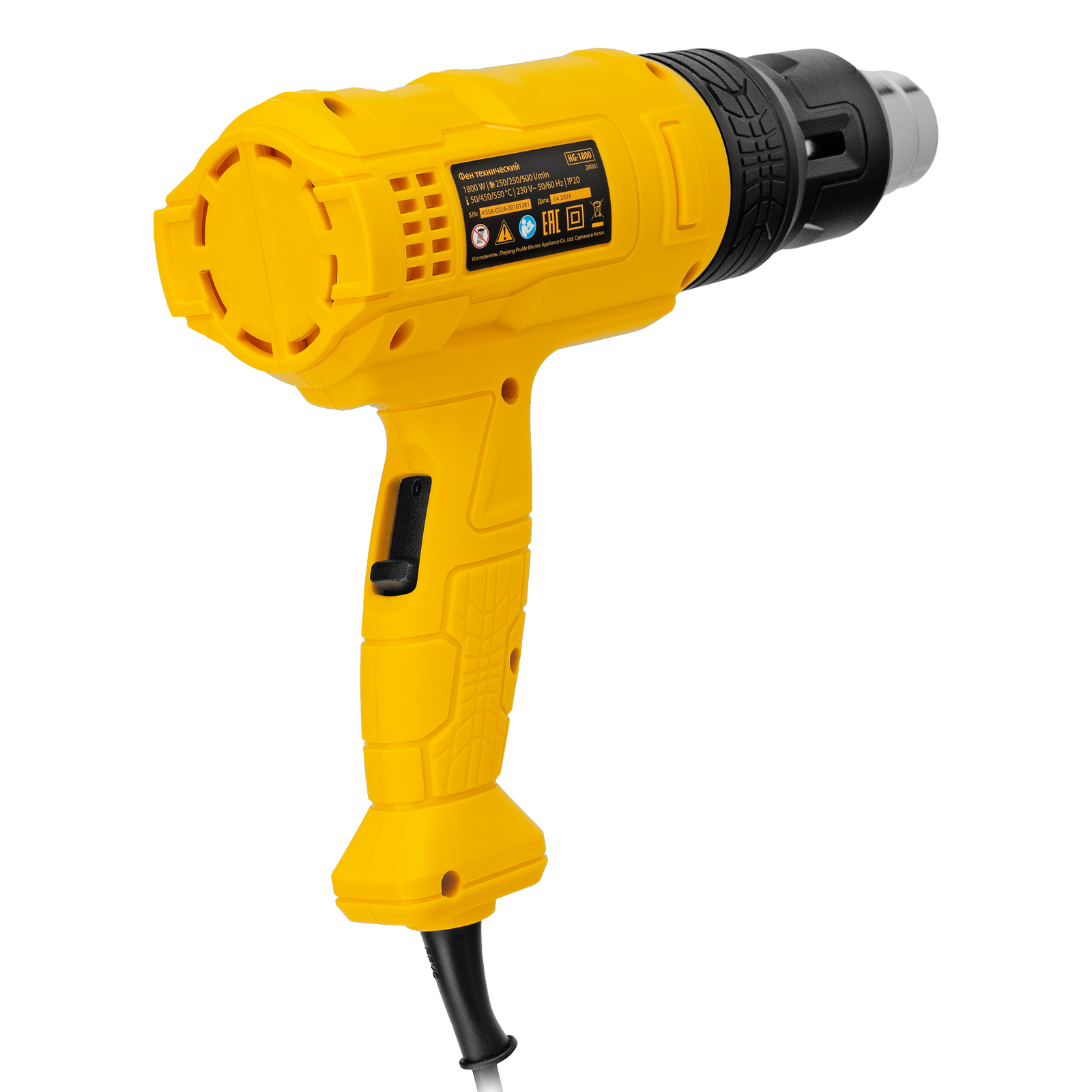 Фен технический Denzel HG-1800 28001 мощностью 1,8 кВт работает в 3 режимах: с температурой 50/450/550 ℃ и производительностью 250/250/500 л/мин соответственно. Используется в качестве источника горячего воздуха для нагрева и просушивания различных материалов, снятия лакокрасочных покрытий, сварки изделий из пластика, дезинфекции поверхностей, а также при проведении слесарных работ, ремонта и строительства. Набор стандартных опций без лишнего функционала обеспечивает идеальное соотношение цены и качества, делает инструмент оптимальным вариантом для бытового применения.