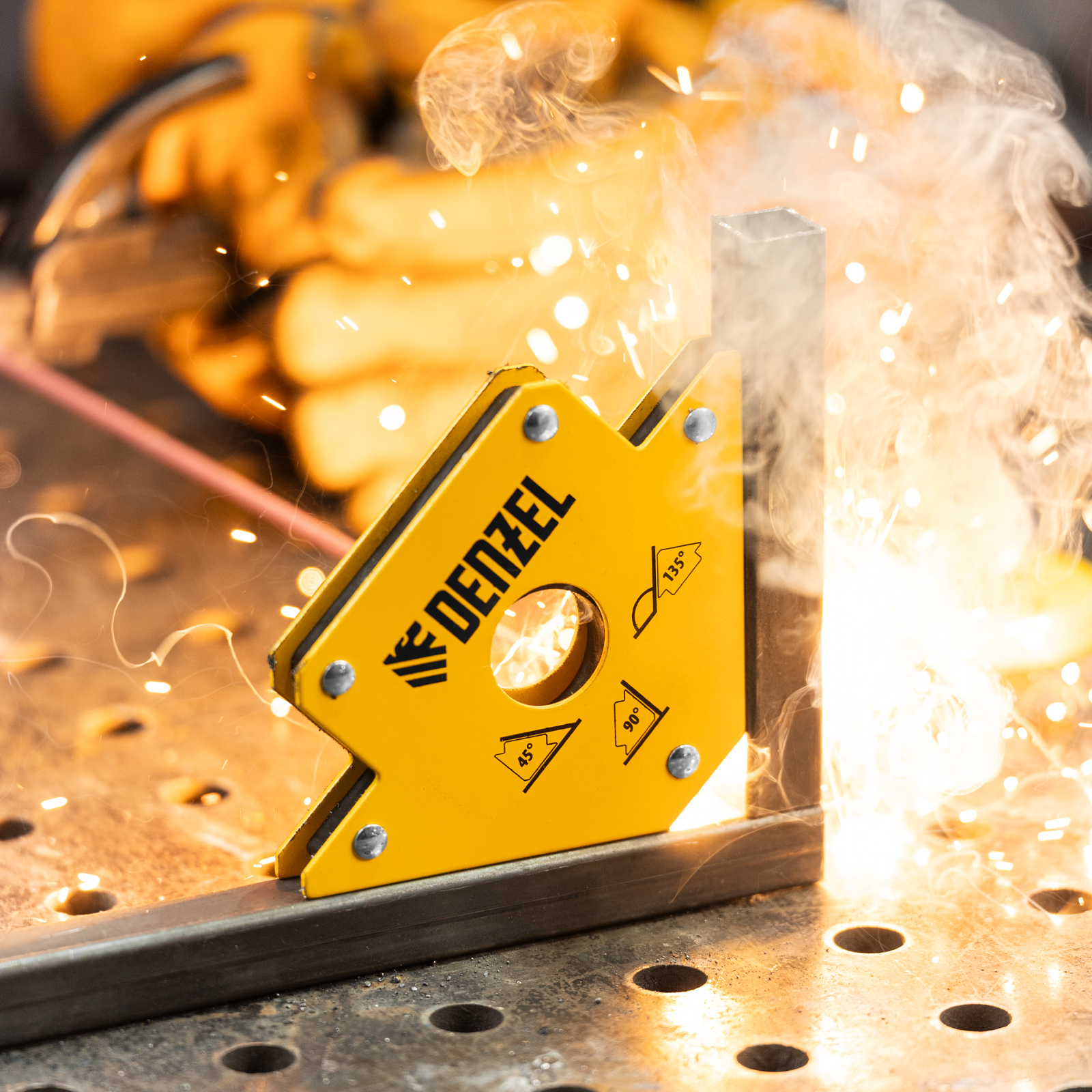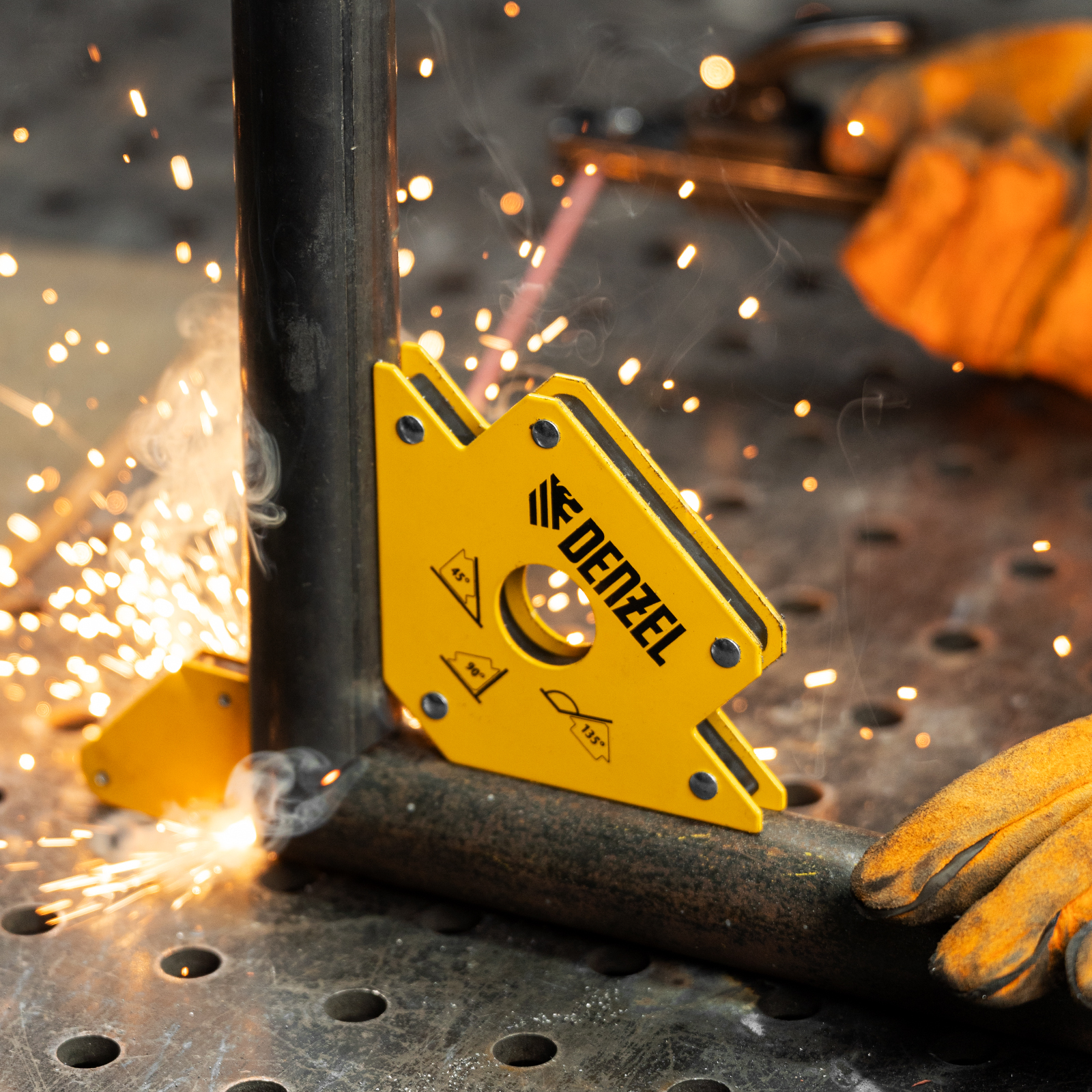 - Высокая эффективность — инструмент упрощает сварочный процесс, не требует особых усилий в использовании и надежно держит выставленные детали под самыми востребованными углами: 45, 90 или 135 градусов.