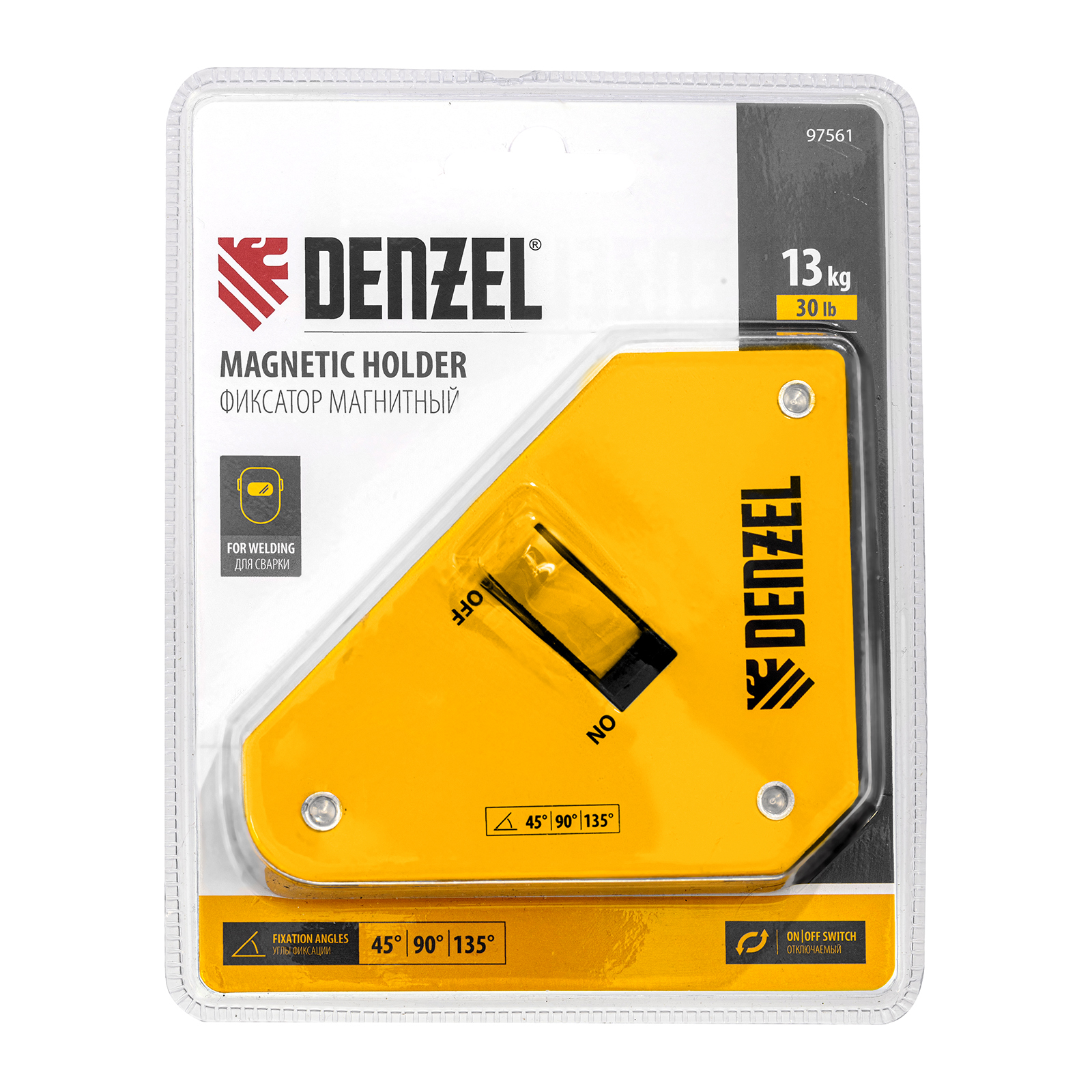 Фиксатор магнитный отключаемый для сварочных работ усилие 30 LB, 45х90 град. Denzel в Воронеже