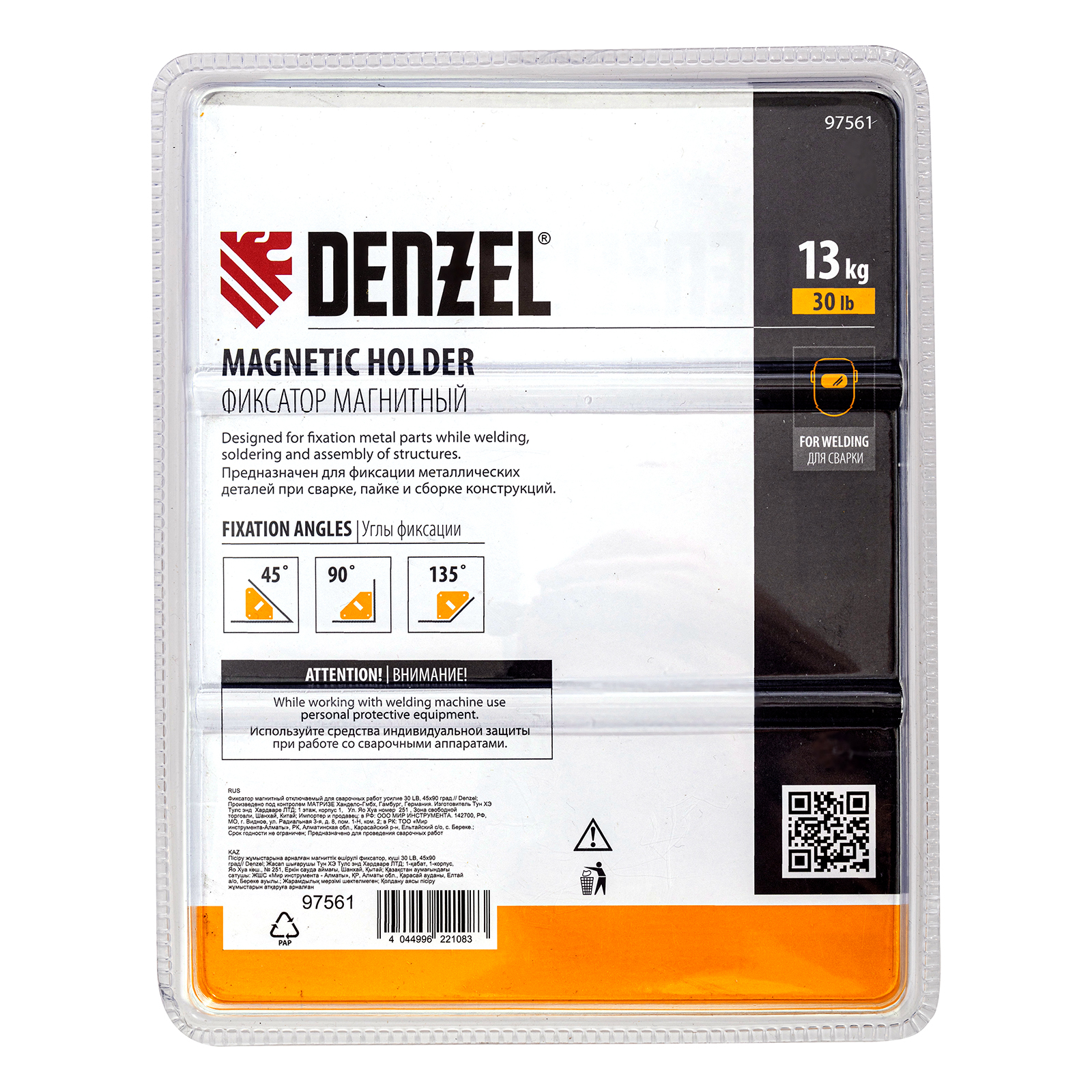 Фиксатор магнитный отключаемый для сварочных работ Denzel 97561 выдерживает усилие 30 LB (14 кг) и способен удерживать металлические предметы под углом 45° и 90°. Применяется при пайке, сварке, монтаже уголков, труб, профилей и других конструкций. Магнитное поле при необходимости отключается, что упрощает установку фиксатора и его снятие.