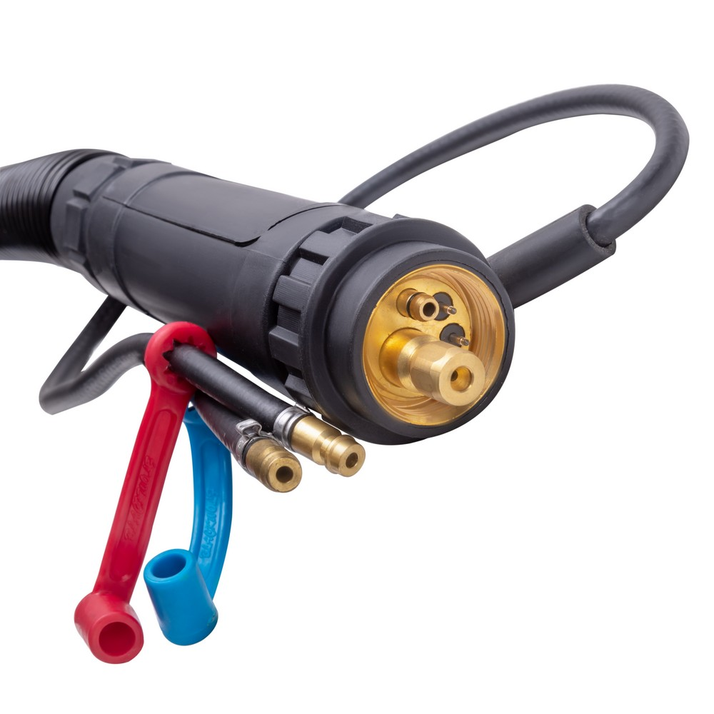 Сварочная горелка с жидкостным охлаждением UnoMIG-500 3м предназначена для сварки MIG/MAG при подключении к аппаратам полуавтоматической сварки для выполнения различного вида сварочных работ. Удобная рукоятка с кнопкой управления сварочным процессом и эргономичный дизайн горелки обеспечивают максимальный комфорт во время работы. Жидкостная система охлаждения позволяет работать при большом сварочном токе продолжительный период времени.ЖИДКОСТНОЕ ОХЛАЖДЕНИЕ: Горелка с жидкостным охлаждением оснащена специальным каналом, по которому циркулирует охлаждающая жидкость. Благодаря системе жидкостного охлаждения достигается ПВ 100%, что позволяет выполнять длинные швы и работать длительный период времени на большом сварочном токе.ЭРГОНОМИЧНОСТЬ: Эргономичная рукоятка горелки хорошо лежит в руке, а кнопка управления сваркой добавляет функциональности, удобства во время сварочного процесса и простоты обслуживания на месте проведения работ.ПРЕИМУЩЕСТВА:Управление кнопкой на рукояткеКомпозитная рукоятка с нескользящими вставкамиТермостойкий пластик повышенной прочностиКурок улучшенной реактивностиШланг-пакет из резины первичного отливаРасходные материалы повышенной прочностиЖидкостное охлаждениеЕвро разъёмФУНКЦИОНАЛЬНЫЕ ОСОБЕННОСТИ:ЕВРО-РАЗЪЁМ: Стандартный евро-разъём горелки даёт возможность подключения к большинству современных сварочных полуавтоматов.КОМПЛЕКТАЦИЯ: Горелка UnoMIG-500 3м - 1 шт.; Гусак UnoMIG 500 угол изгиба 44°, 185 мм - 1 шт.; Канал направляющий тефлоновый, жёлтый - 1 шт.; Сопло коническое 16 мм (MIG-500) - 1 шт.; Медный наконечник M8 x 30 х 1,0 мм - 1 шт.; Медный наконечник M8 x 30 х 1,2 мм - 1 шт.; Диффузор газовый (MIG-500) - 1 шт.; Держатель наконечника M8 (MIG-500) - 1 шт.*Производитель оставляет за собой право вносить изменения в комплектацию оборудования без предварительного уведомления покупателя.