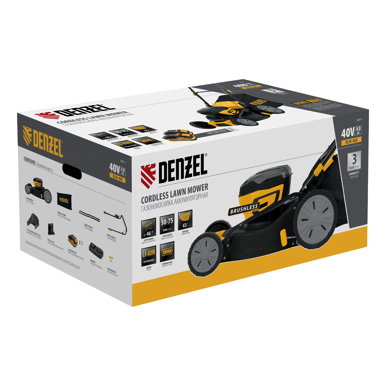 Газонокосилка аккумуляторная бесщет. DLM-460, 460 мм, травосб. 65 л., Li-Ion, 40 В Denzel в Воронеже