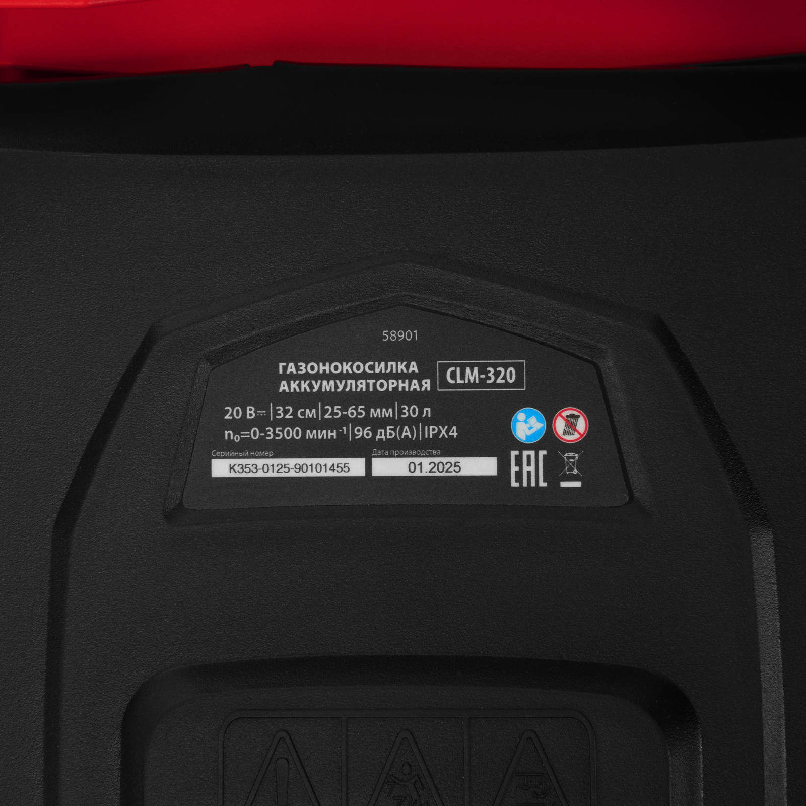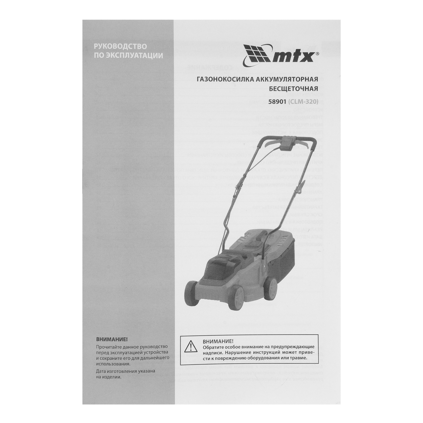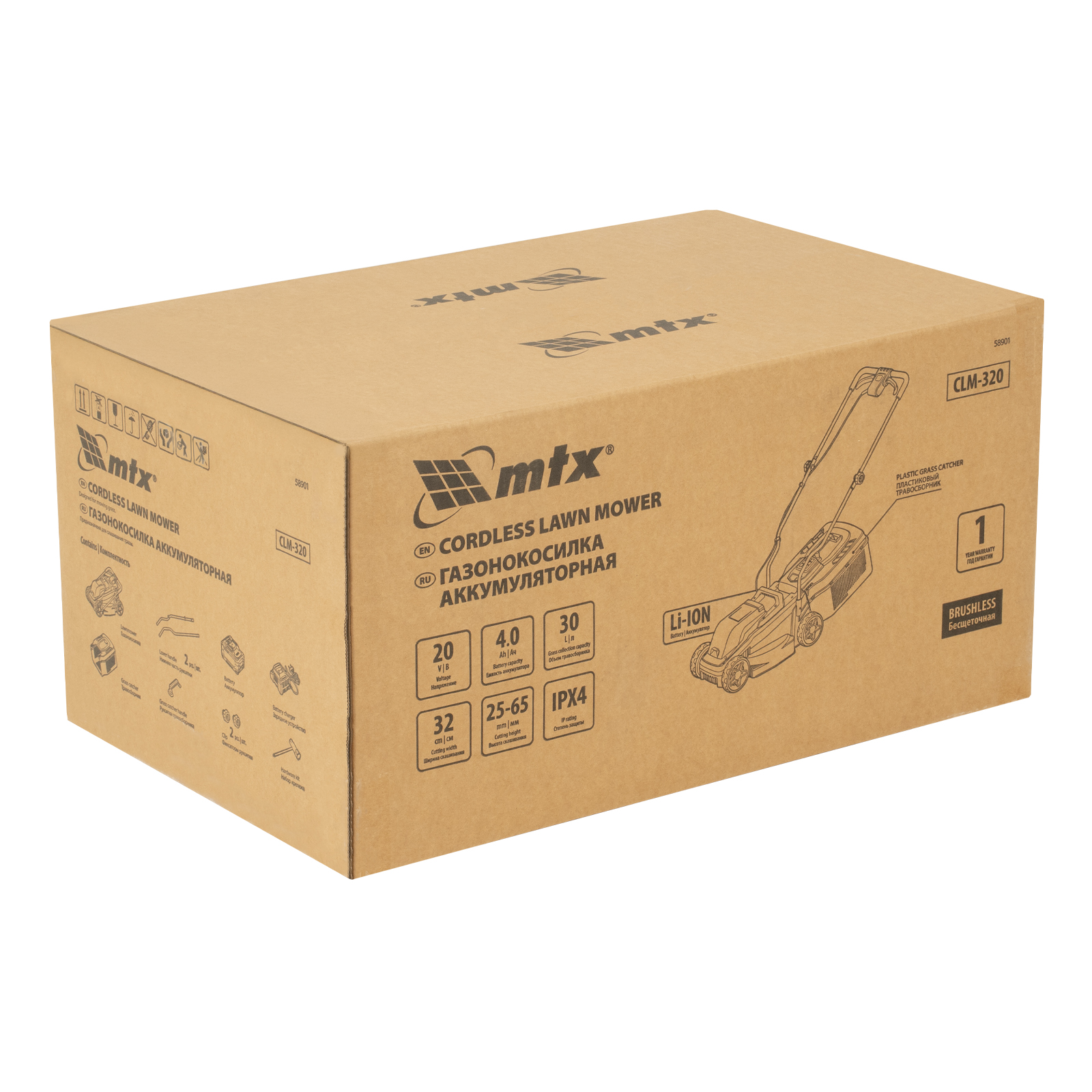 Газонокосилка аккумуляторная бесщеточная CLM-320, 320 мм, травосб. 30 л, Li-Ion, 20 В MTX в Воронеже