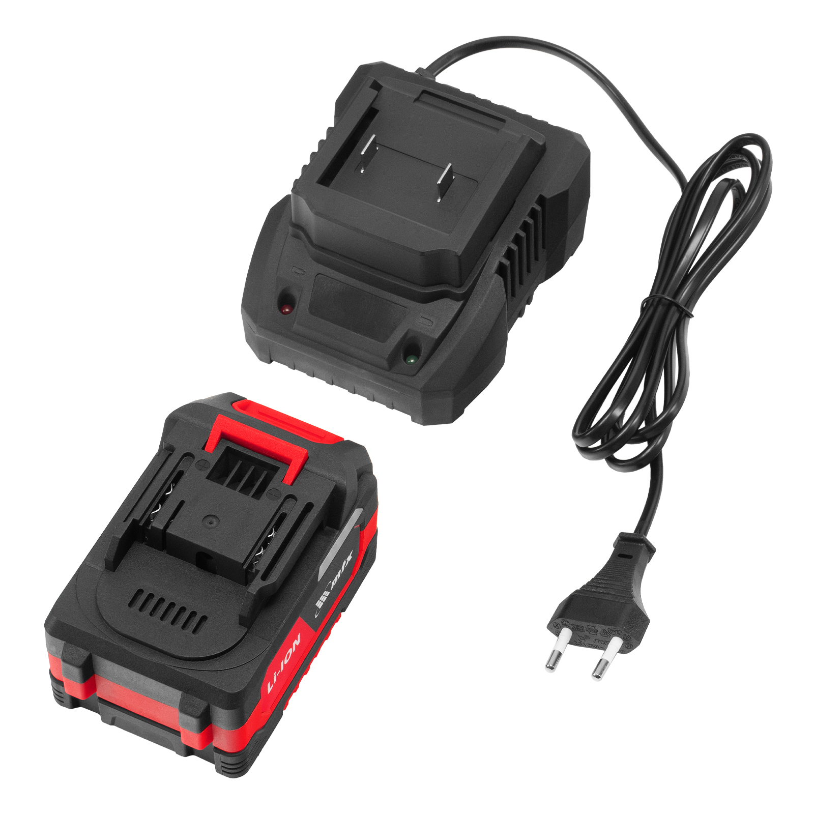 - Готовность к эксплуатации — аккумулятор емкостью 4 А·ч и зарядное устройство входят в комплект поставки.
