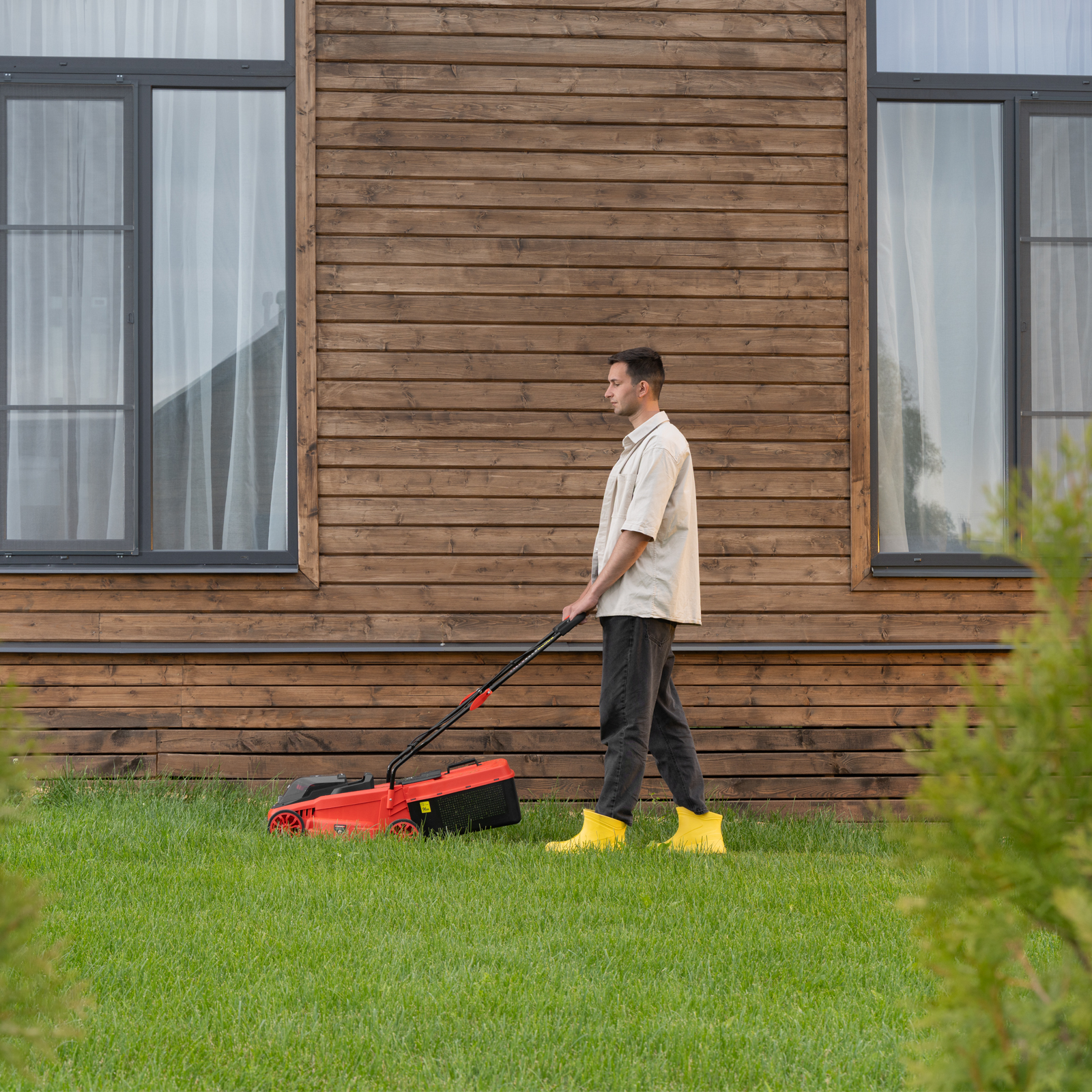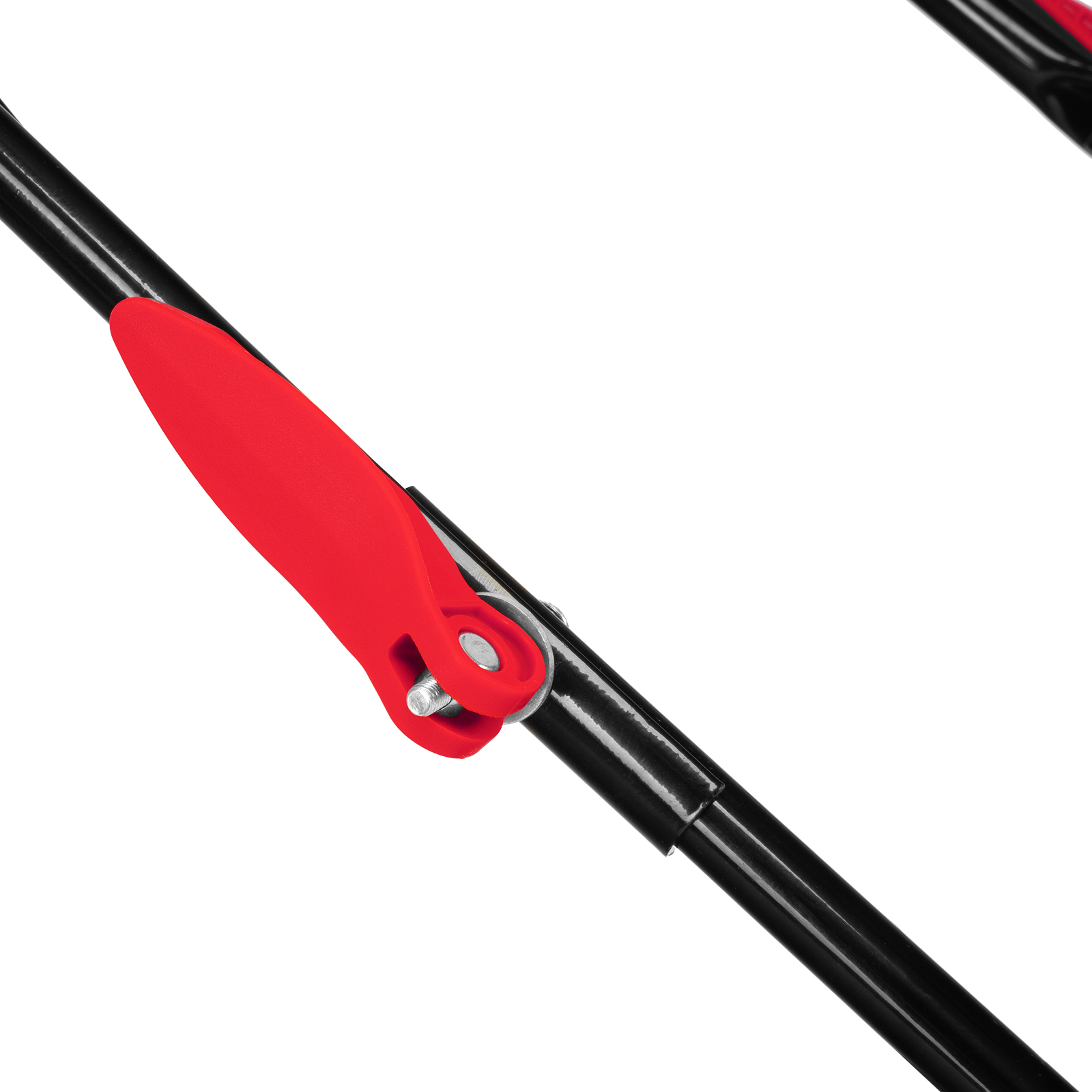 - Небольшой вес 9,6 кг — пластиковая дека не утяжеляет конструкцию, газонокосилку легко направлять.