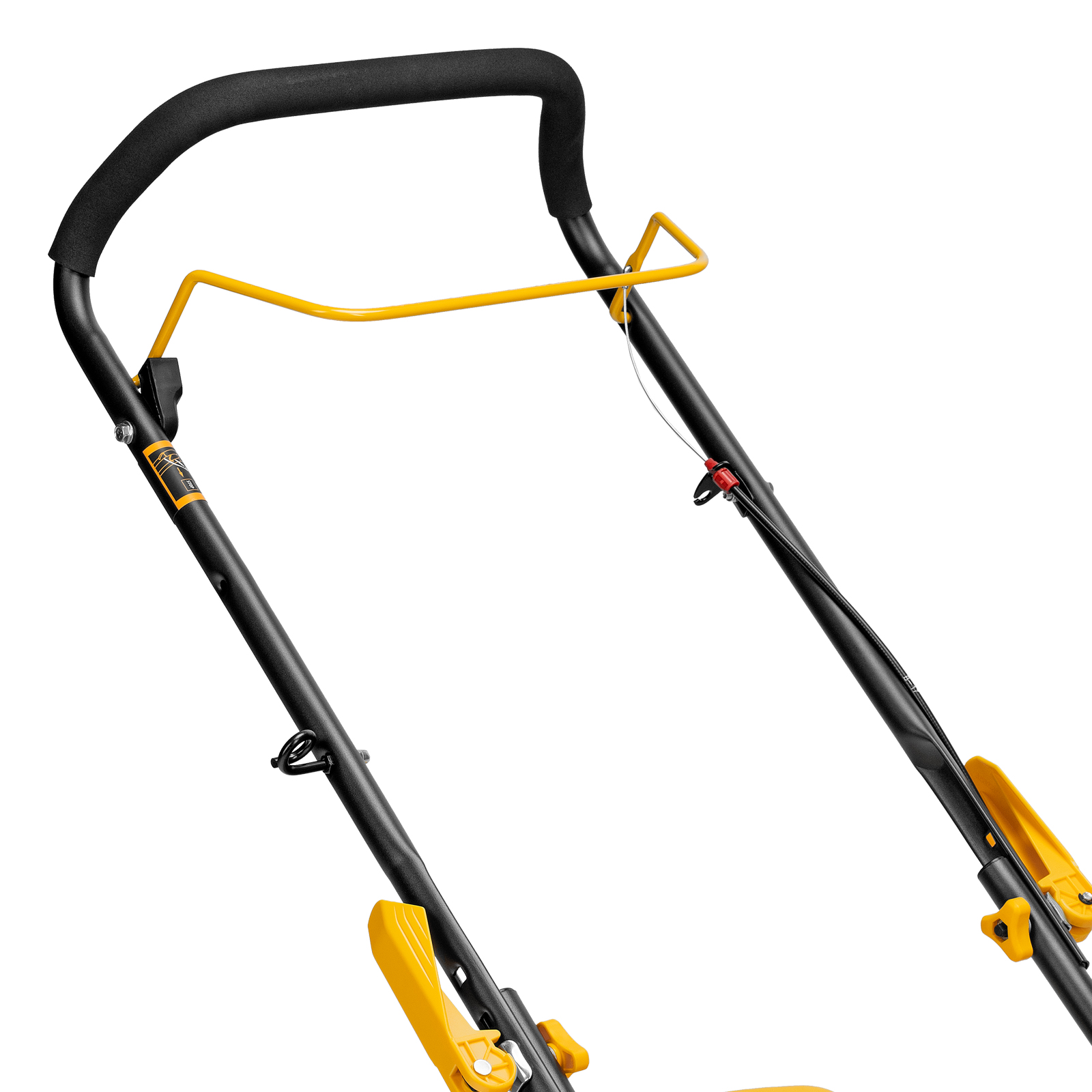 - Увеличенные задние колеса — косилка отличается хорошей проходимостью и при этом не повреждает газон.