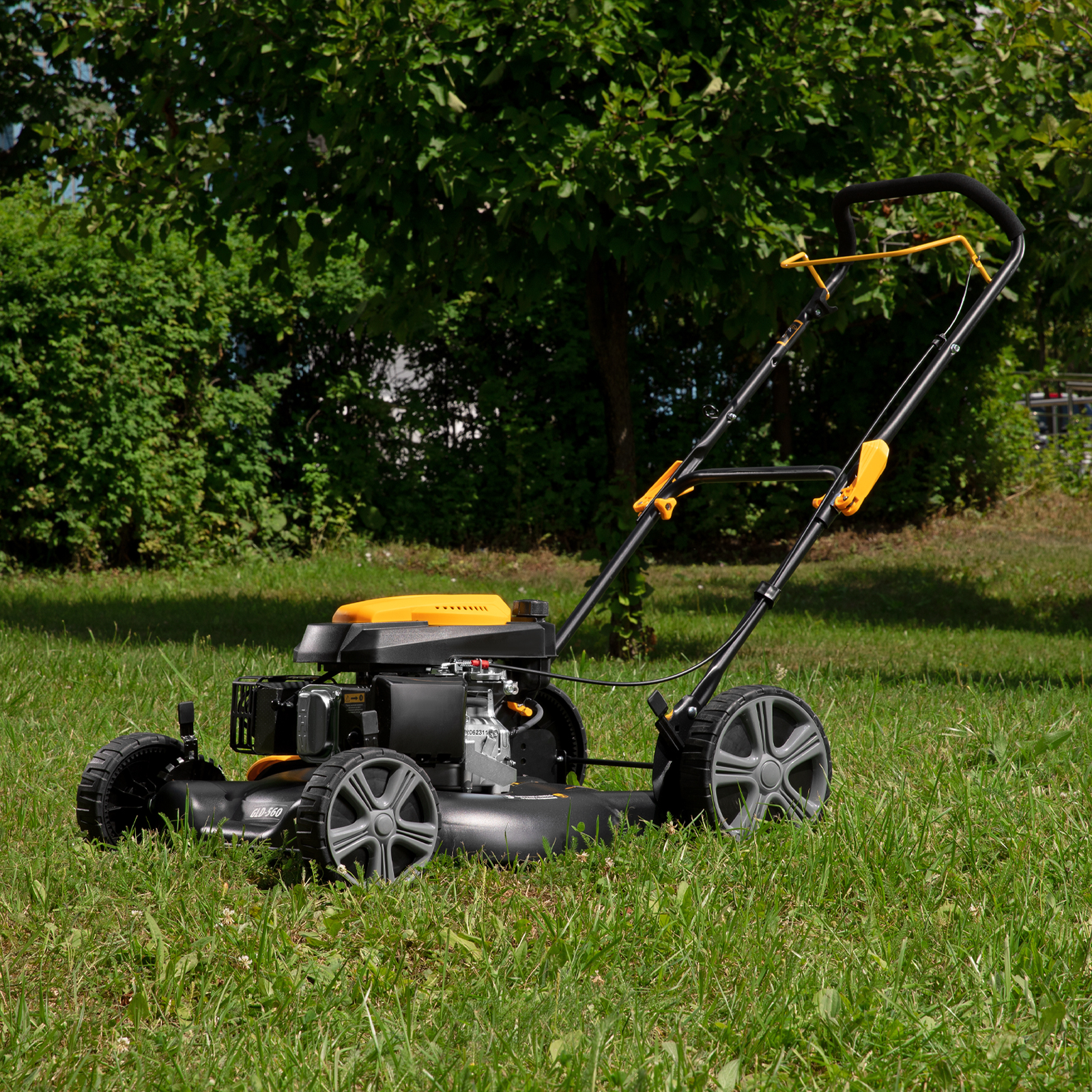 Газонокосилка бензиновая Denzel GLD-560 58808 с двигателем объемом 196 см3 обеспечивает повышенную ширину скашивания за один проход — целых 56 см. Благодаря этому за 1 час возможно обработать до 2000 кв.м. На одной заправке машина способна проработать до 60 минут.,Техника разработана специально для коммунальных служб — конструкция не предусматривает наличие травосборника, трава распределяется по газону: возможен боковой выброс и переработка травы в органическое удобрение (режим мульчирования).