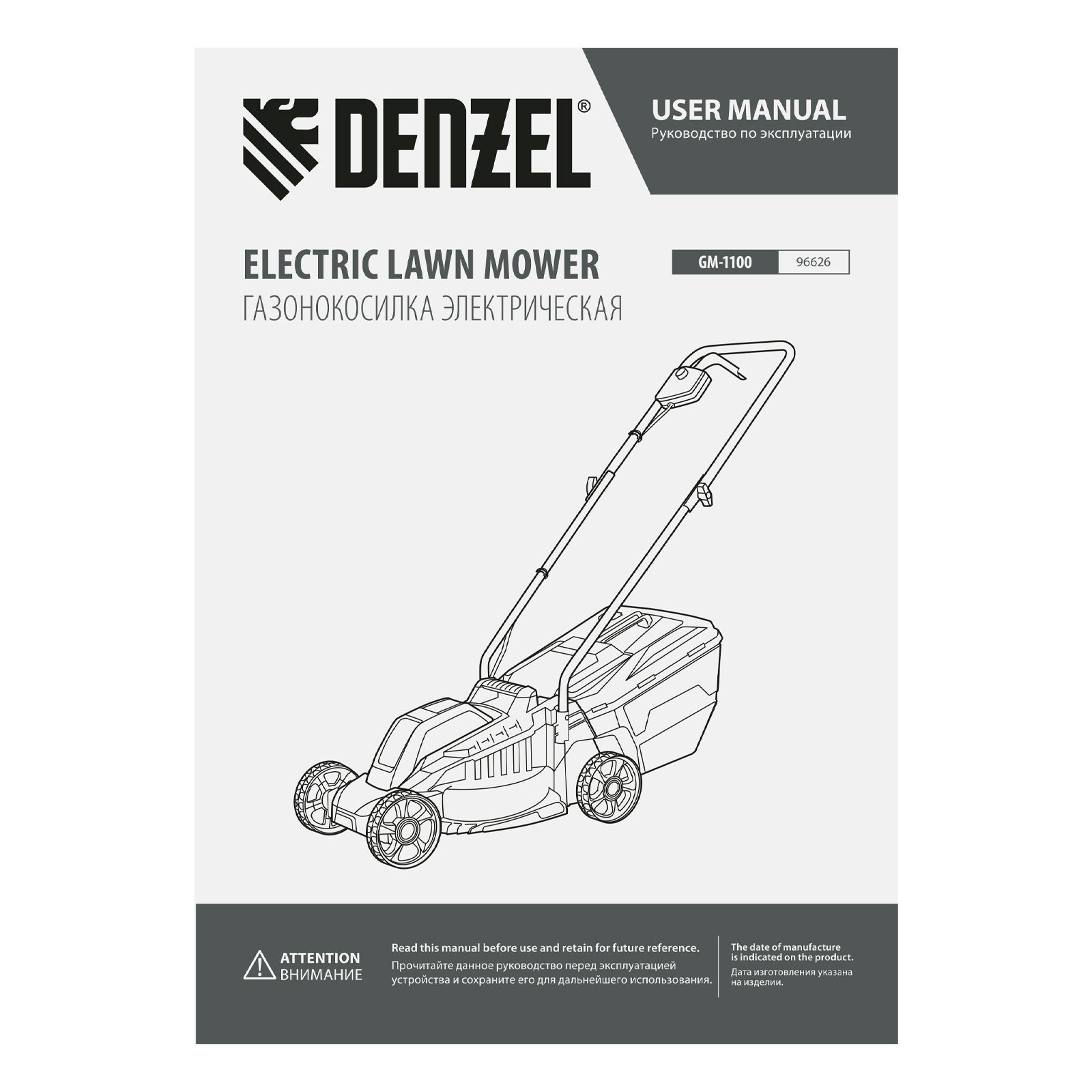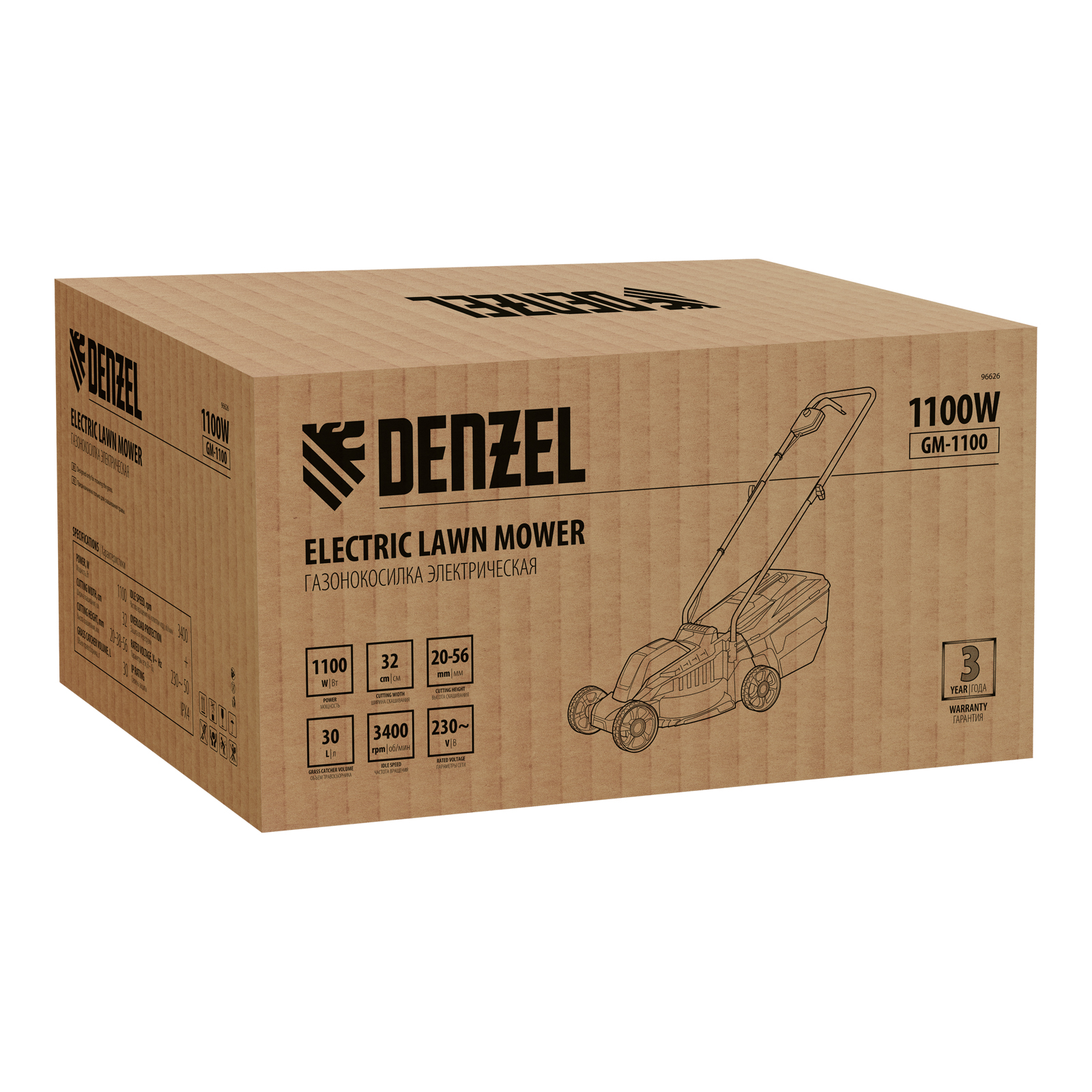 Газонокосилка электрическая GM-1100, 1100 Вт, шир. 32 см, 3 уров., травосб. 30 л Denzel в Воронеже