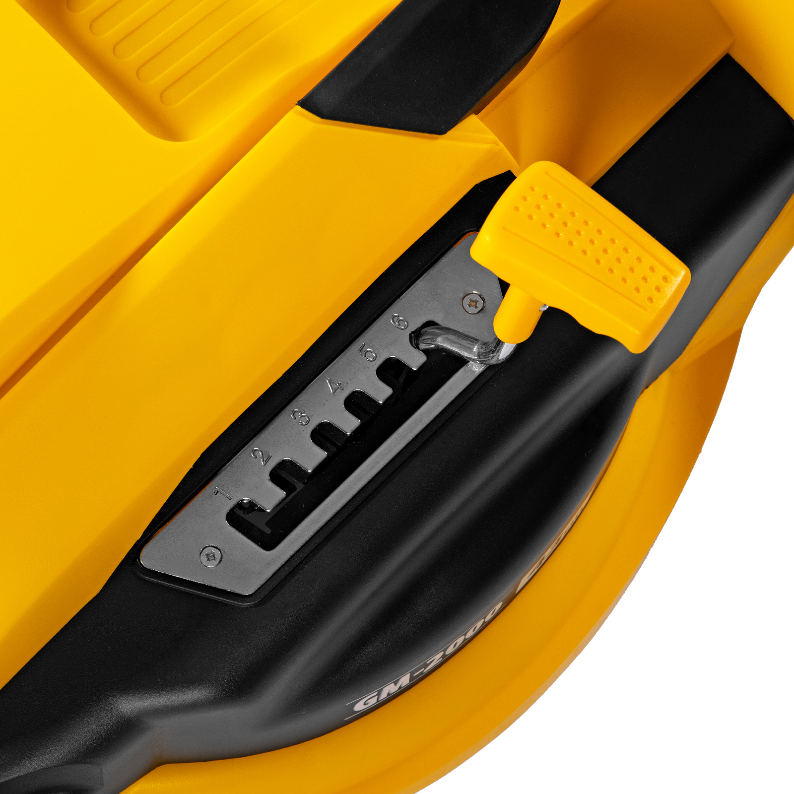 - Индикация заполнения травосборника — по положению флажка-указателя легко определить, когда пора освободить емкость от скошенной травы.