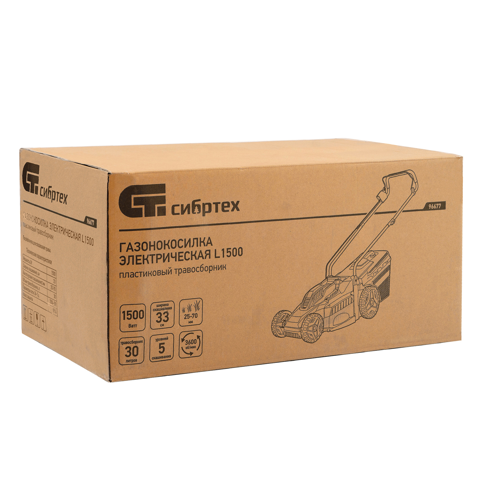 Газонокосилка электрическая L1500, 1500 Вт, ширина 33 см, 5 уровней, пластиковый травосборник 35 л Сибртех в Воронеже