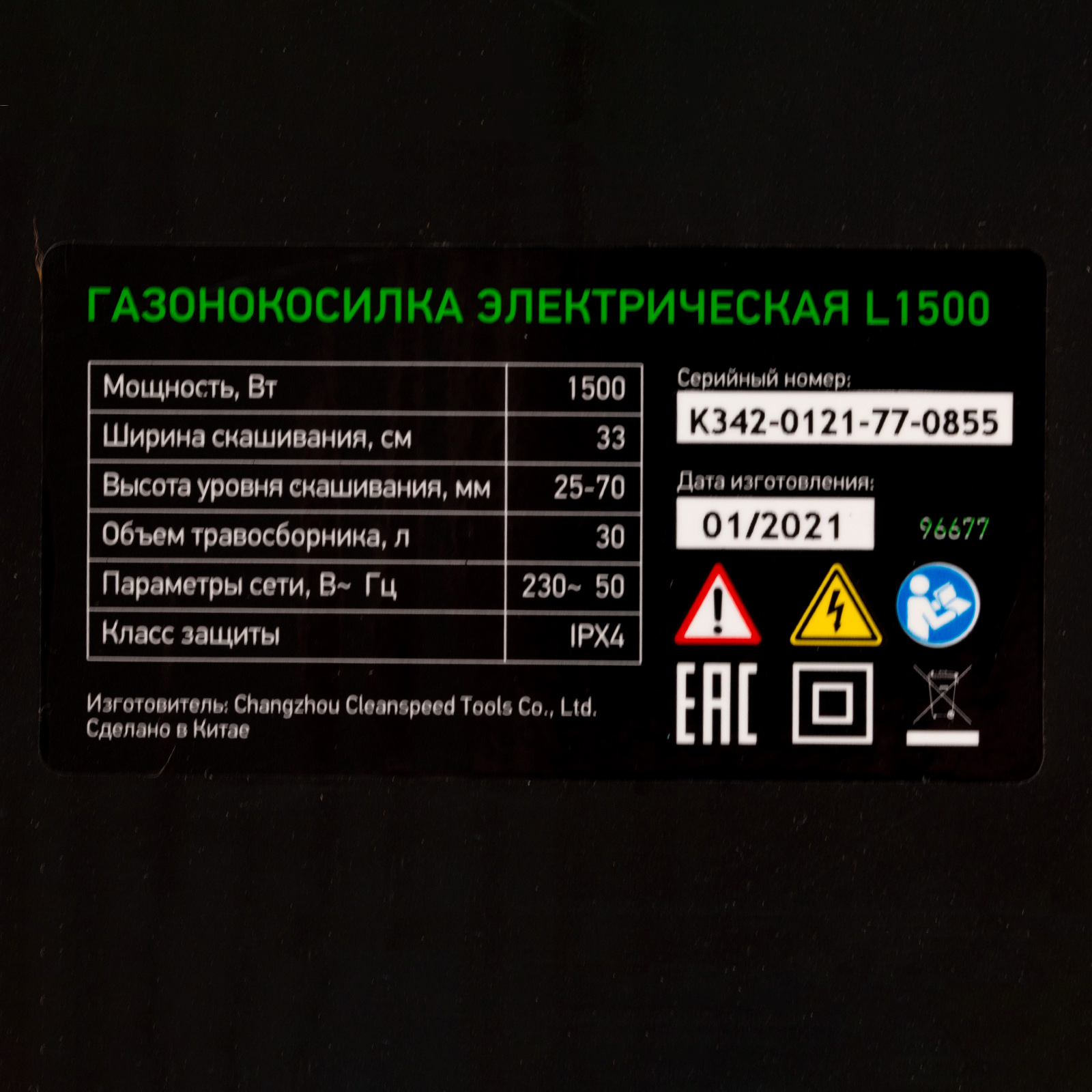 Электрическая газонокосилка Сибртех L1500 96677 мощностью 1500 Вт, с 5 уровнями скашивания, с травосборником объемом 35 л, предназначена для подрезания невысокой травы. Ширина прохода 33 см и мощность мотора 1,5 кВт позволяют за 1 час обрабатывать почти 1200 кв.м.,Косилка не наносит ущерб природе и проста в применении, т.к. работает без масла и топлива, а ее обслуживание сведено к нескольким простым шагам. Именно поэтому она подходит даже начинающим пользователям.,Настройка высоты скашивания находится в диапазоне 30–70 мм. Перемещая рычаг в одно из 5 положений, Вы сможете создать несколько типов ландшафта на своем участке, например, партерный, садово-парковый или спортивный.