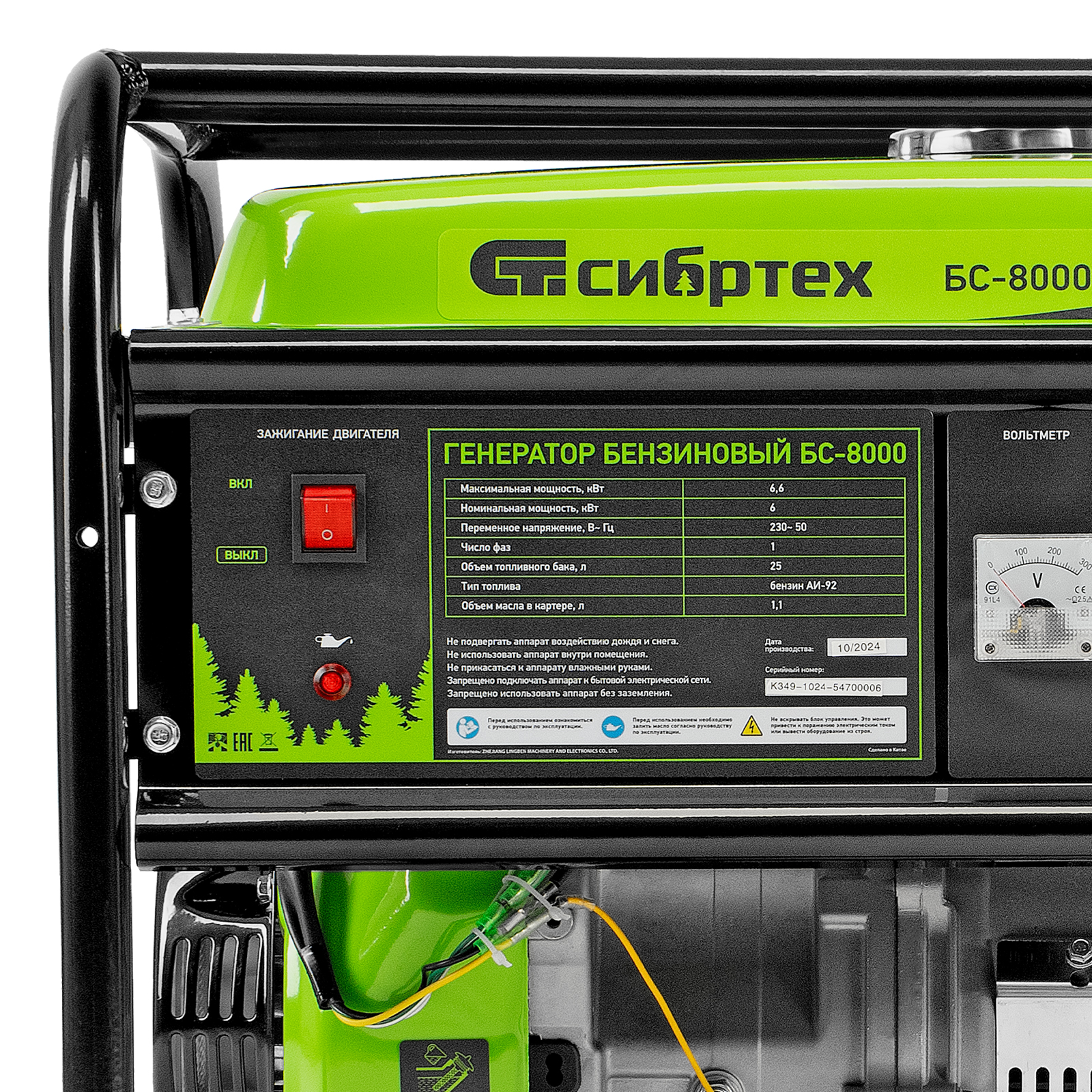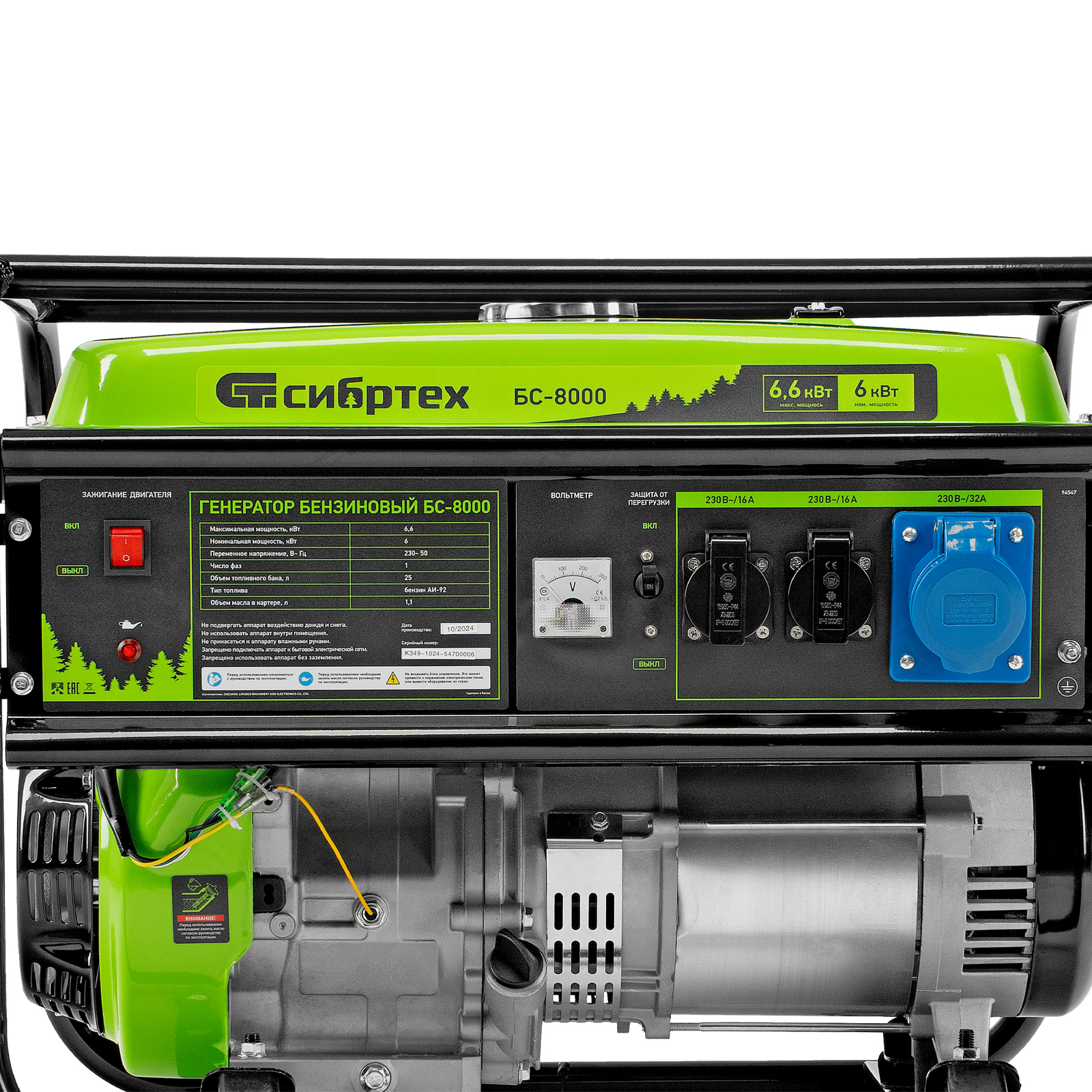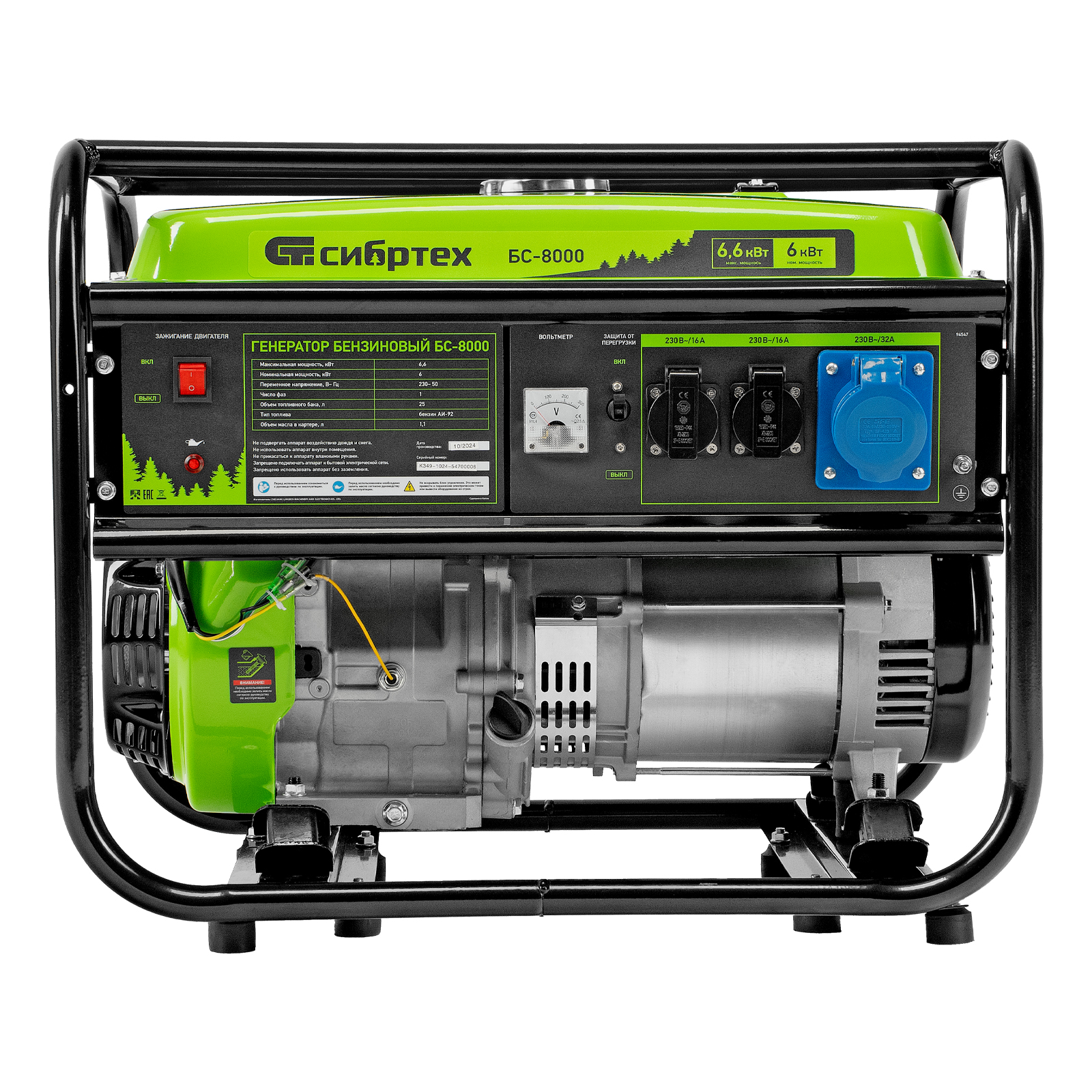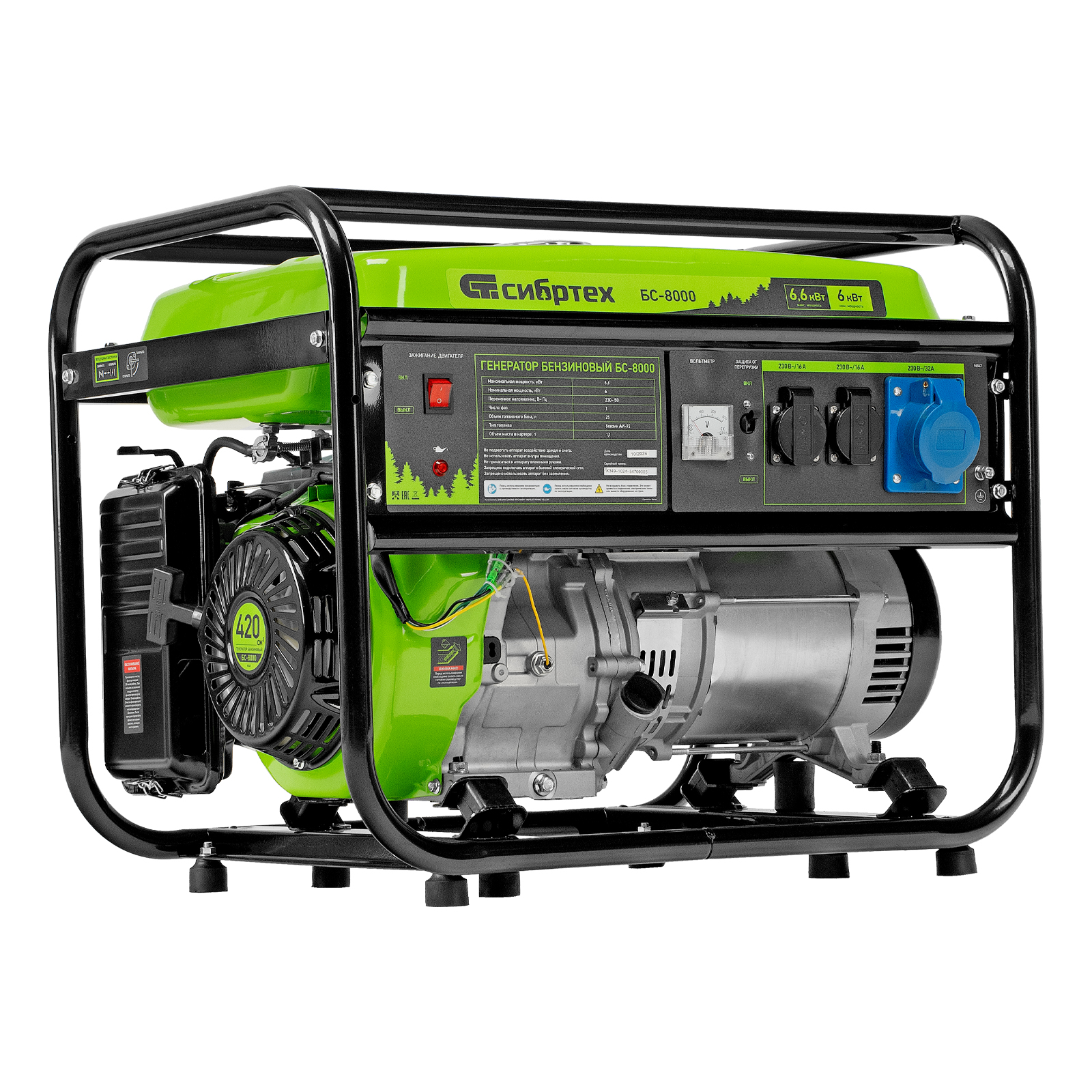 Генератор бензиновый БС-8000, 6,6 кВт, 230В, четырехтактный, 25 л, ручной стартер Сибртех в Воронеже