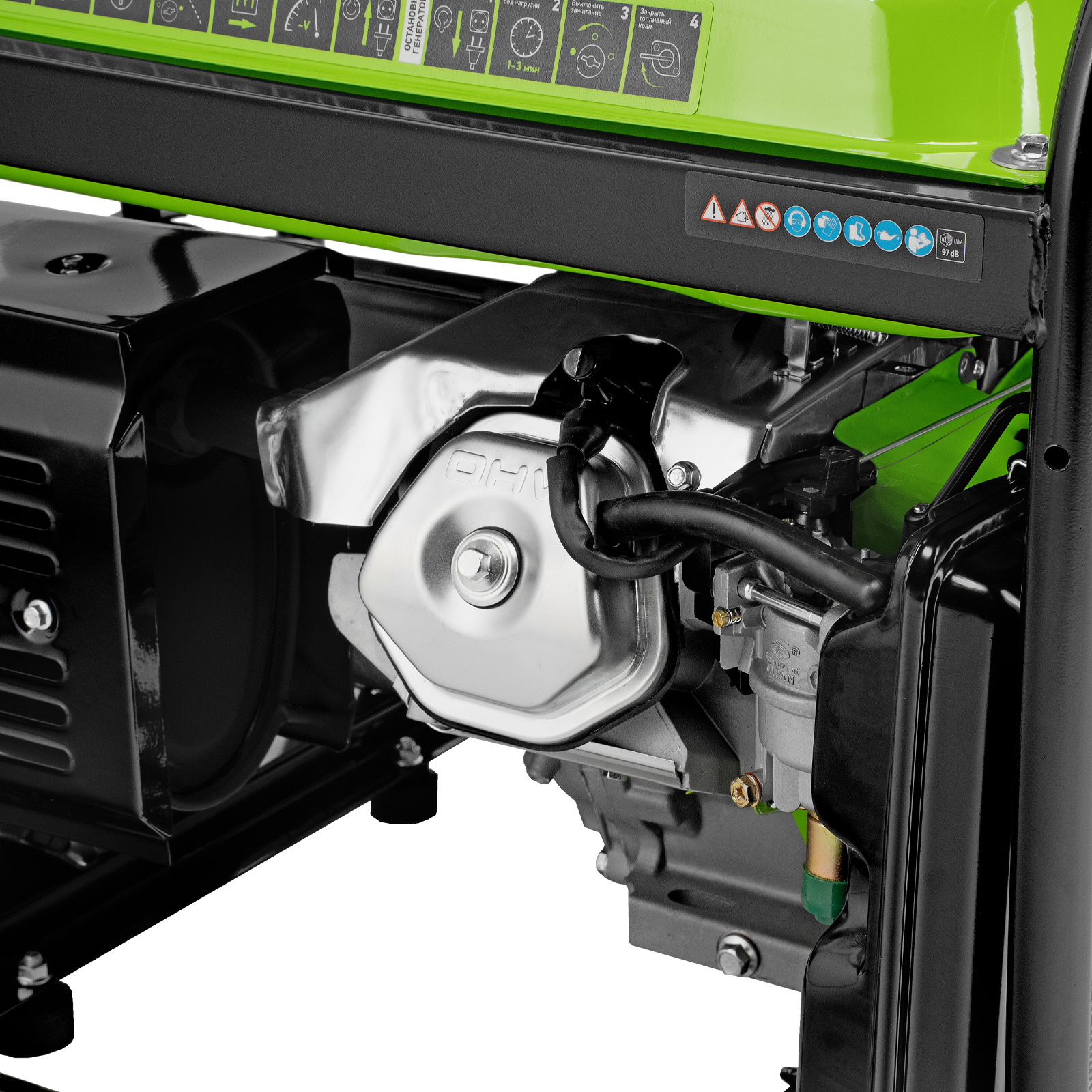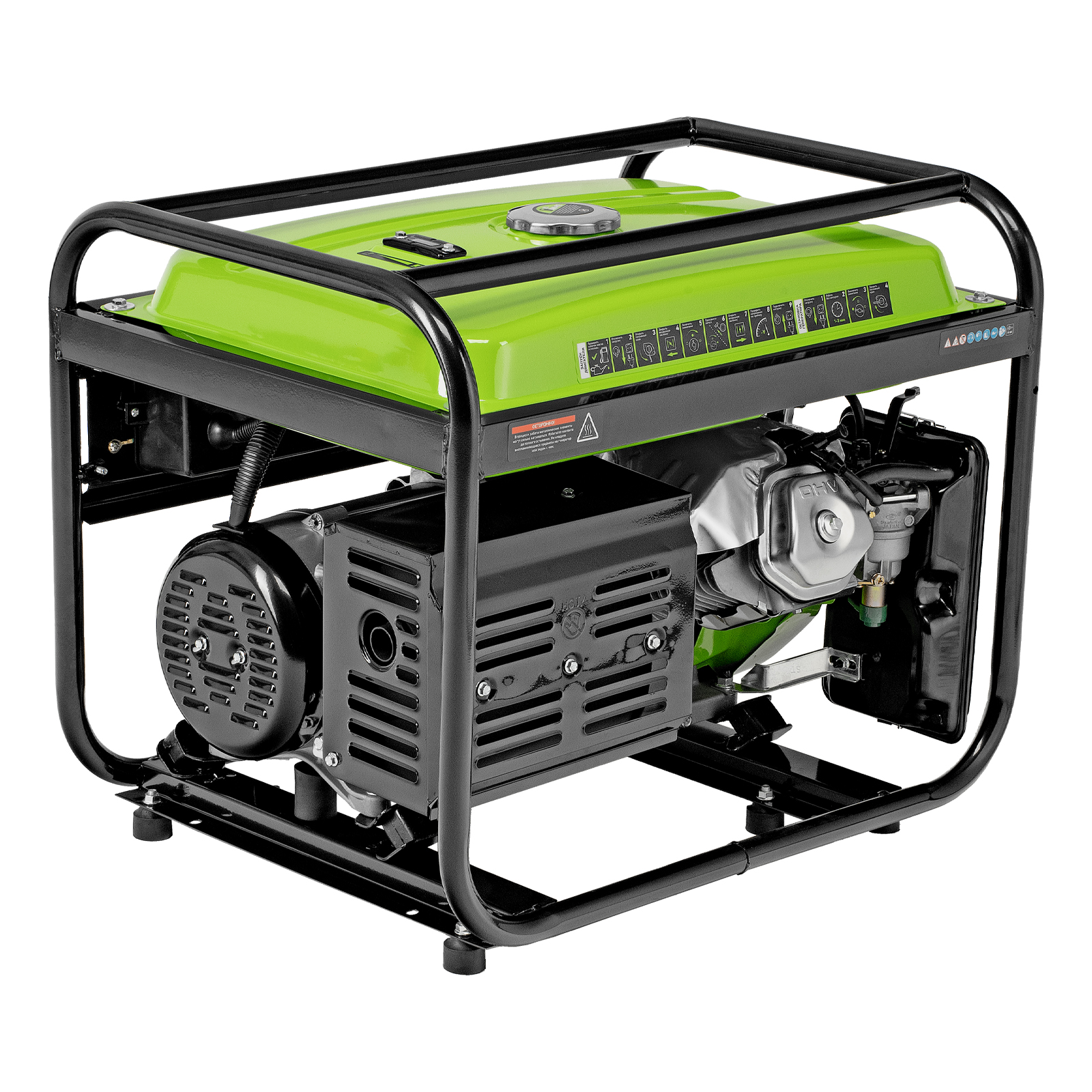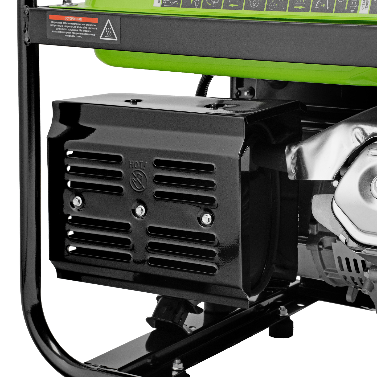 - Прочная конструкция — стальная рама надежно защищает генератор от повреждений.