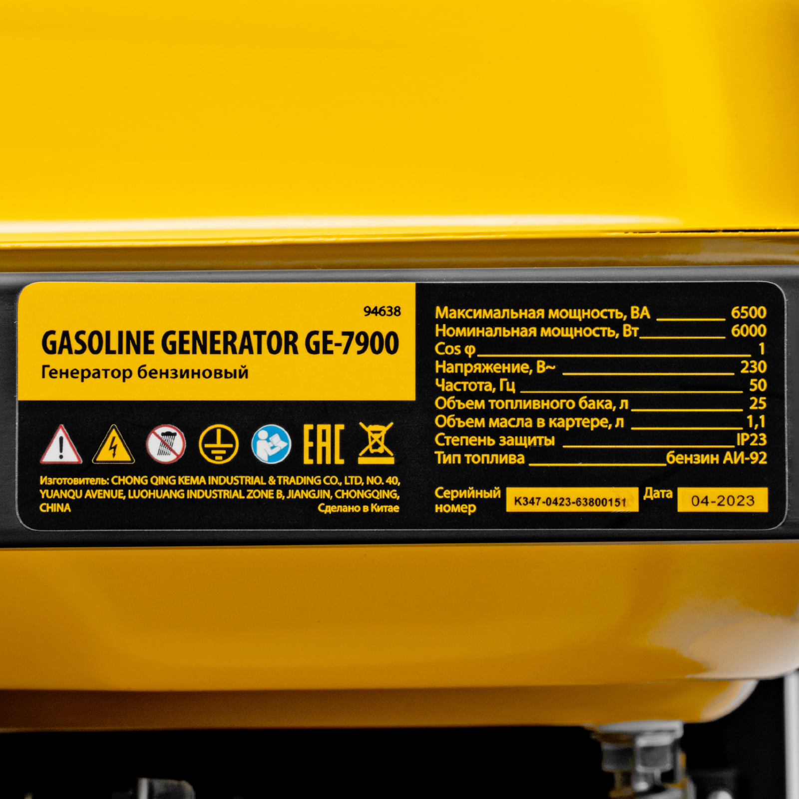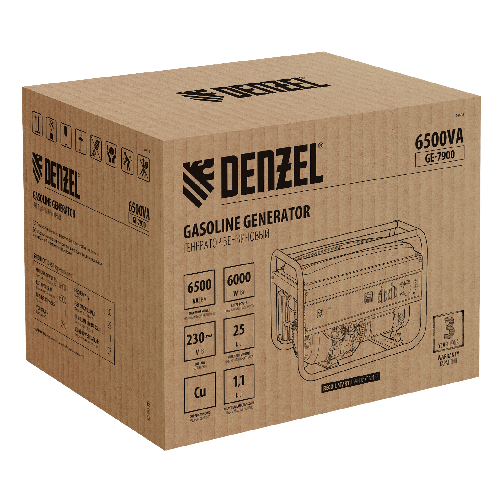 Генератор бензиновый GE 7900, 6.5 кВт, 220 В/50 Гц, 25 л, ручной пуск Denzel в Воронеже