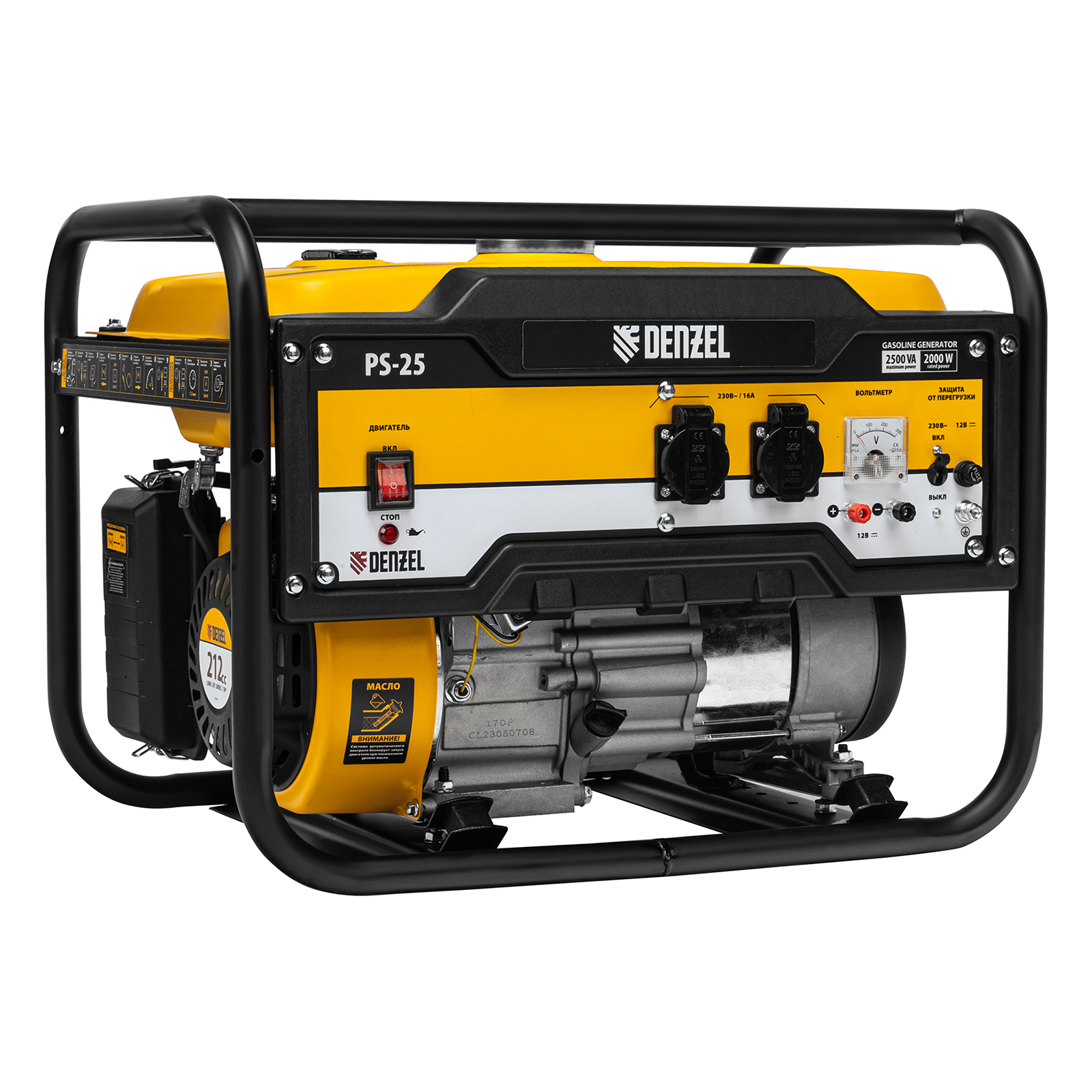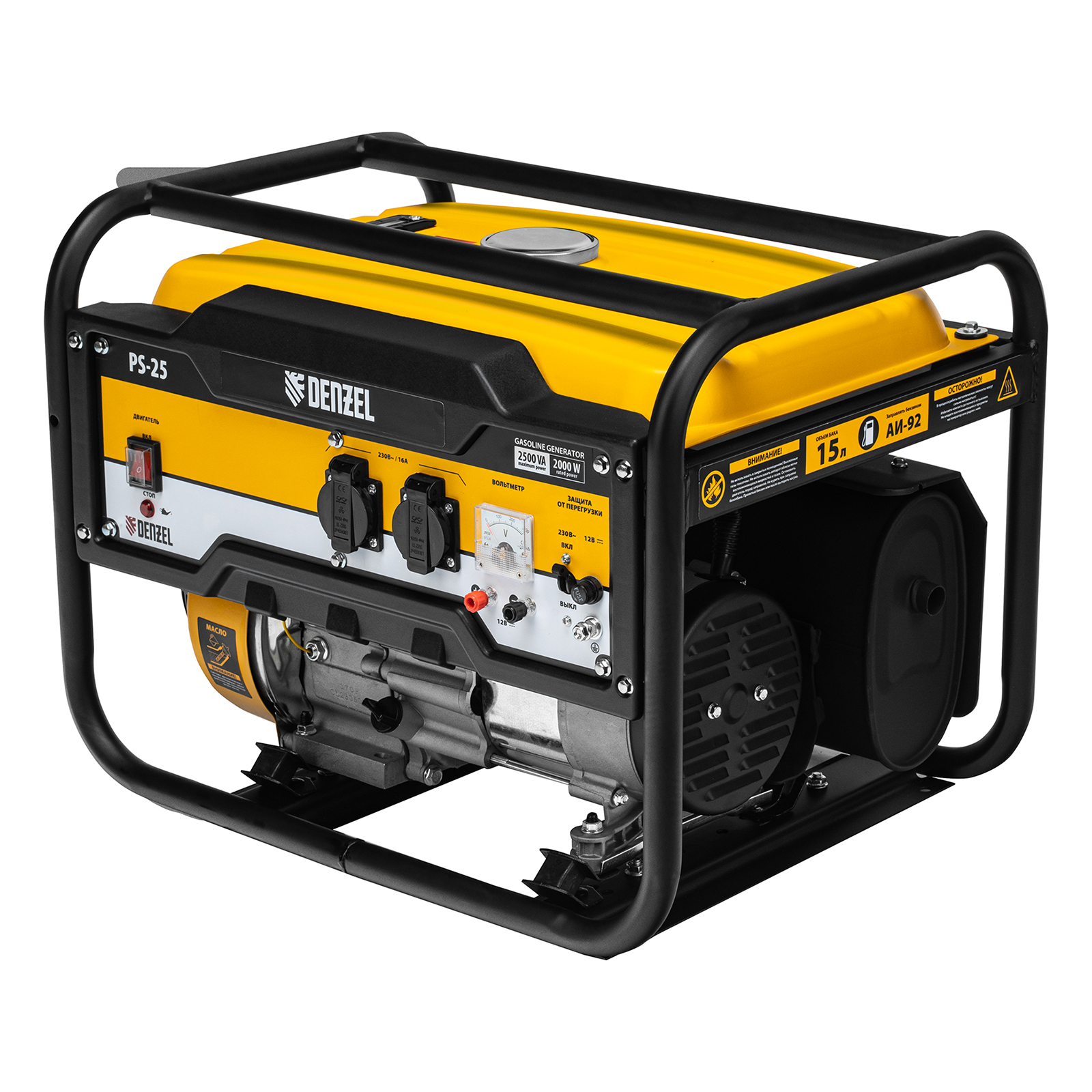 Генератор бензиновый PS 25, 2.5 кВт, 230 В, 15 л, ручной стартер Denzel в Воронеже