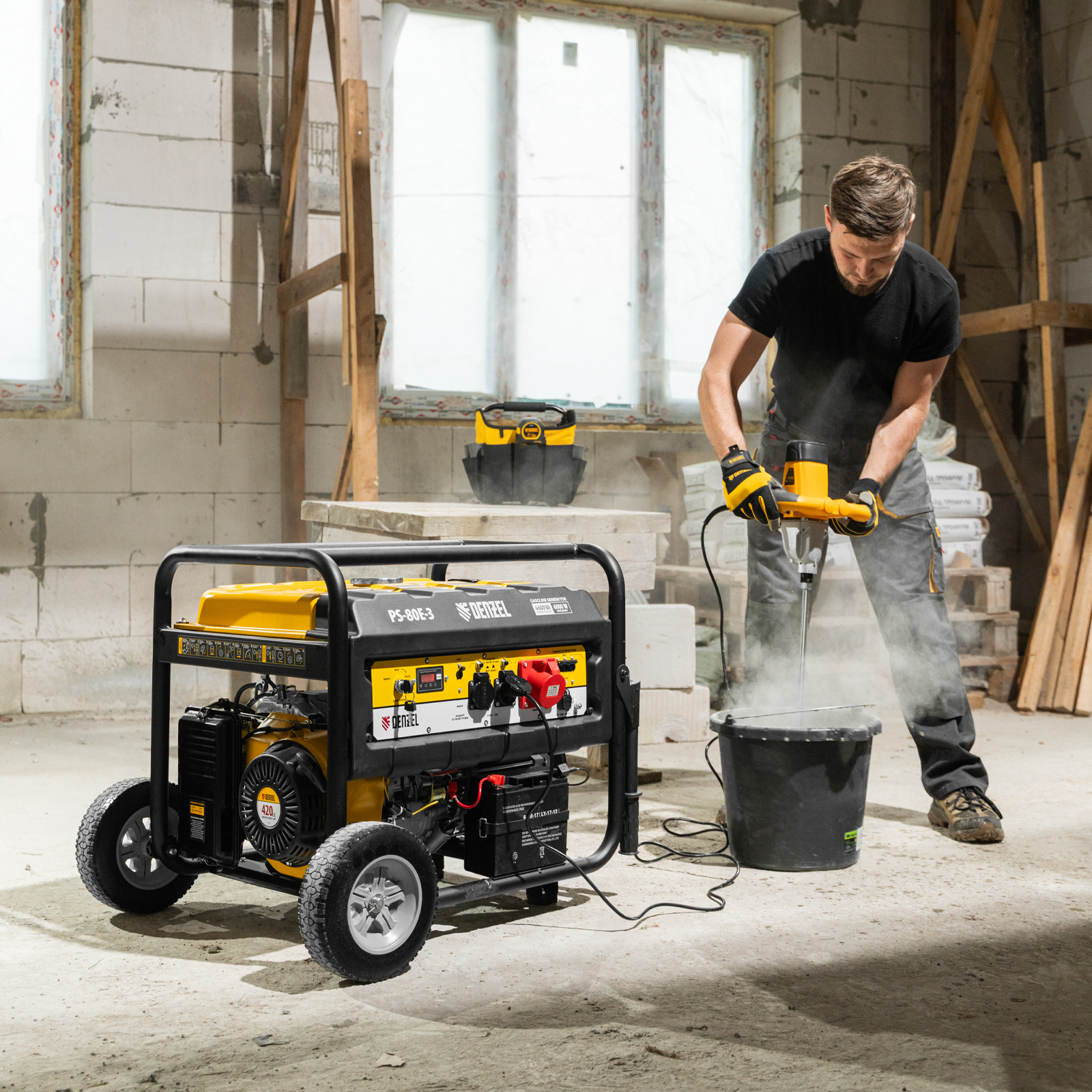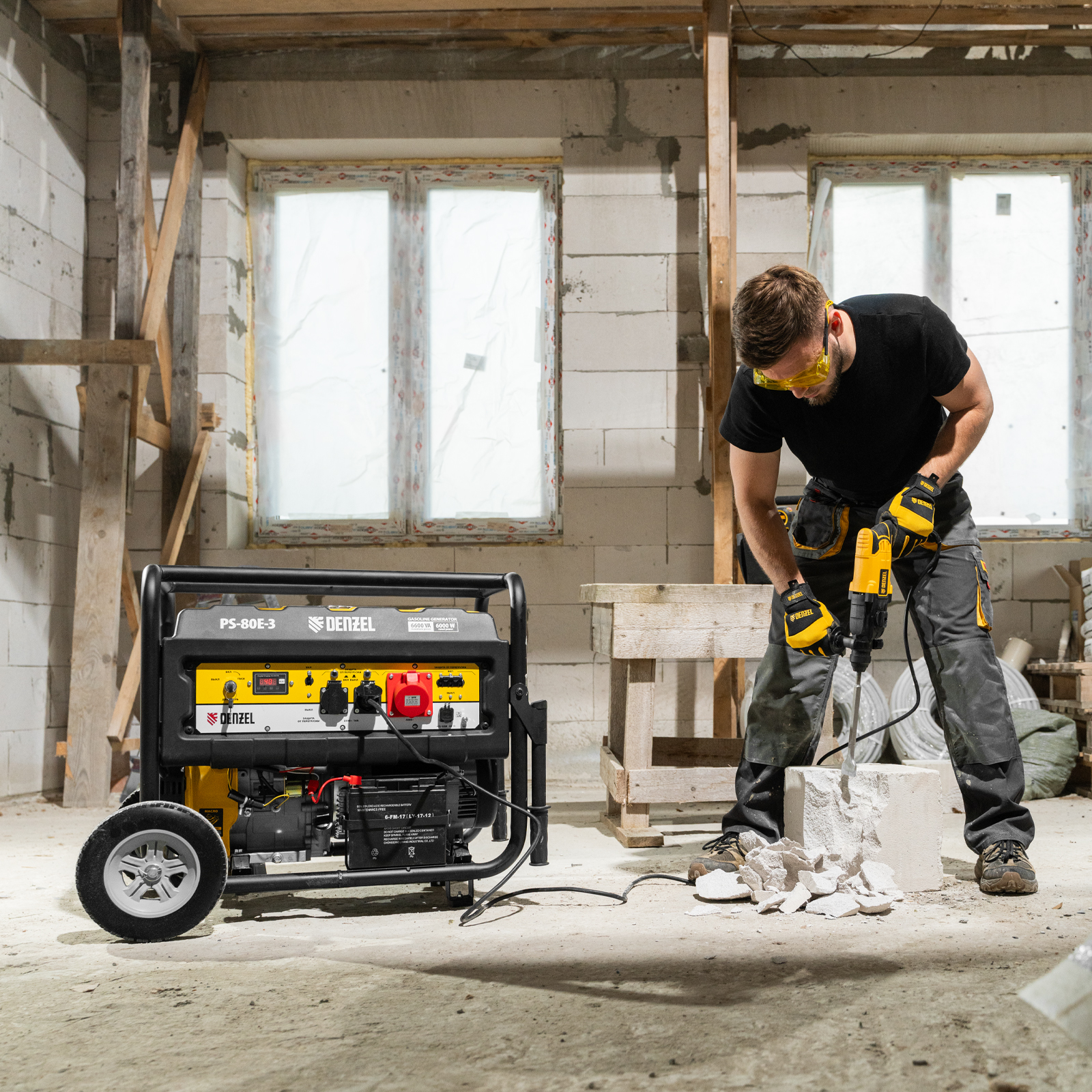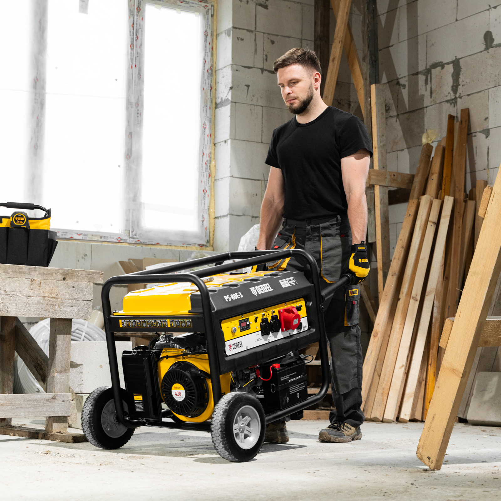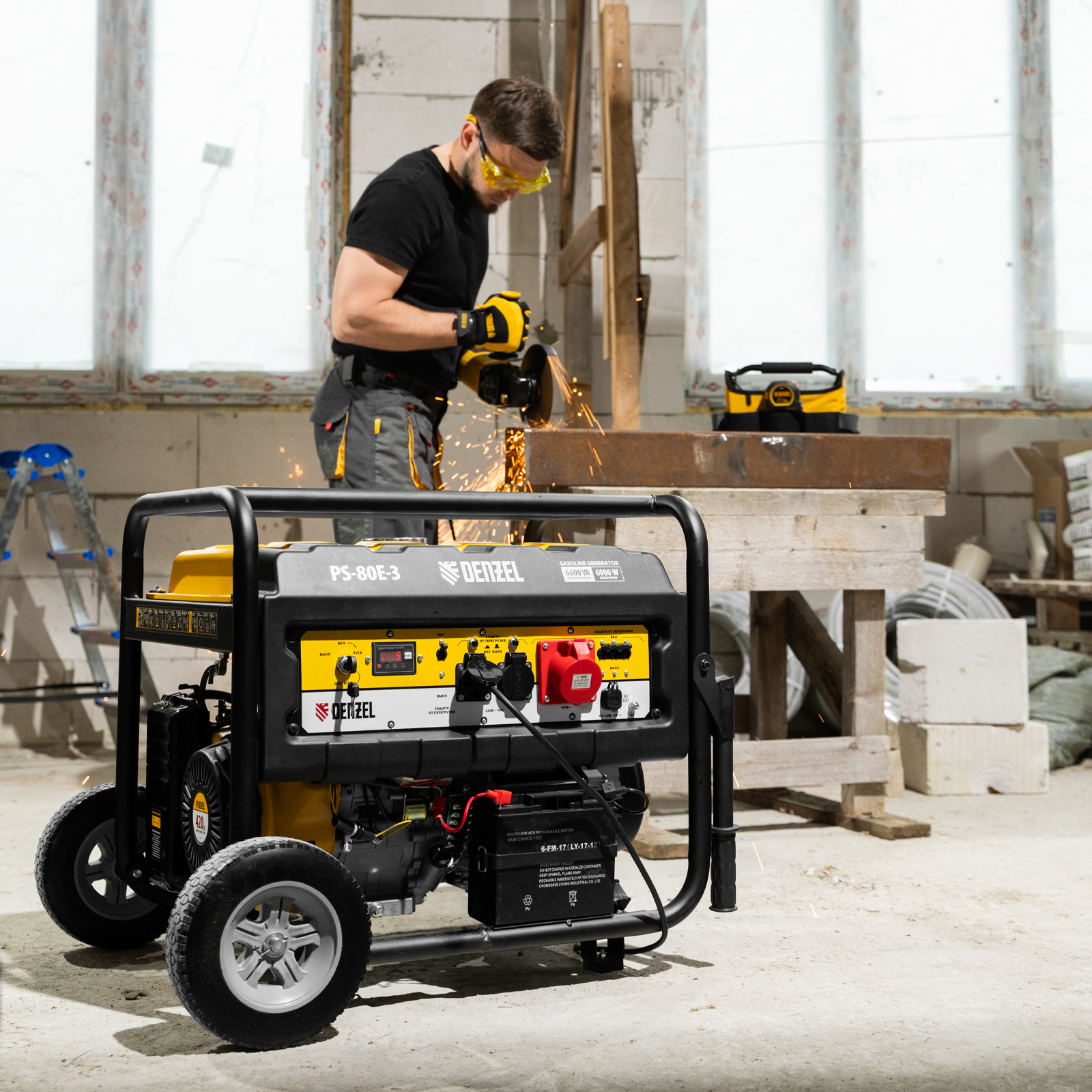 Генератор бензиновый PS 80 E-3, 6.6 кВт, 400 В, 25 л, электростартер Denzel в Воронеже