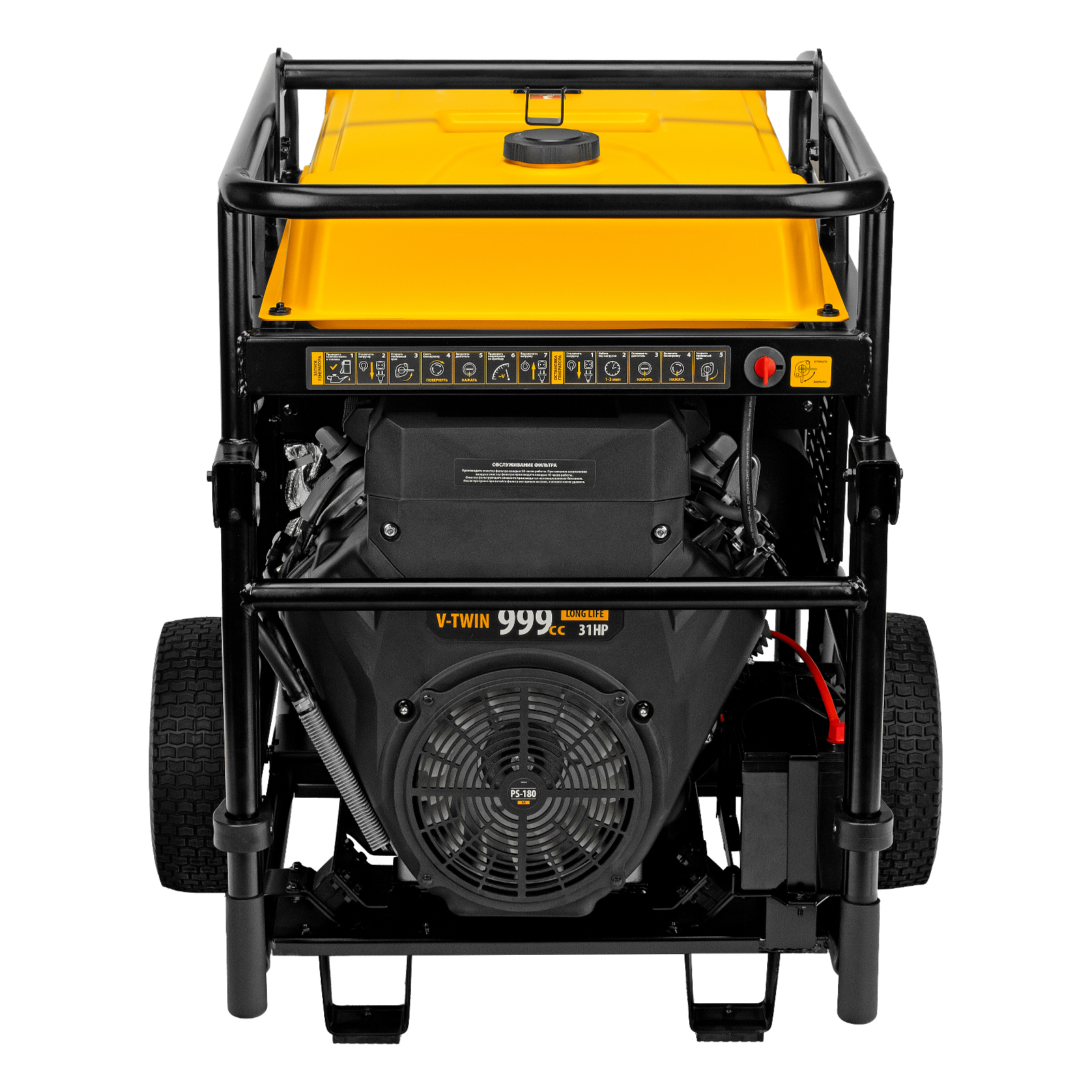 - Мобильность — колеса и ручки упрощают перемещение генератора по рабочей площадке.