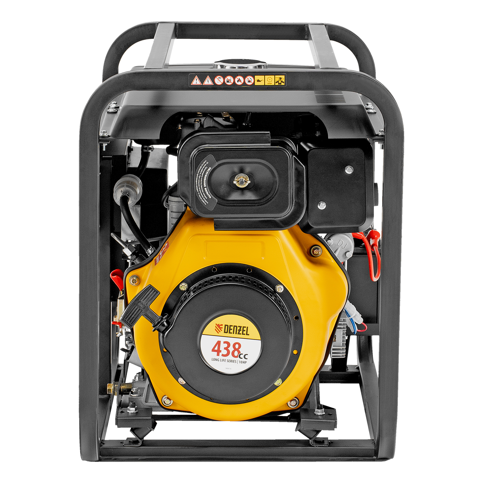 - Мобильность — к генератору можно приобрести транспортировочный комплект Denzel 94906 для перемещения по рабочей площадке.