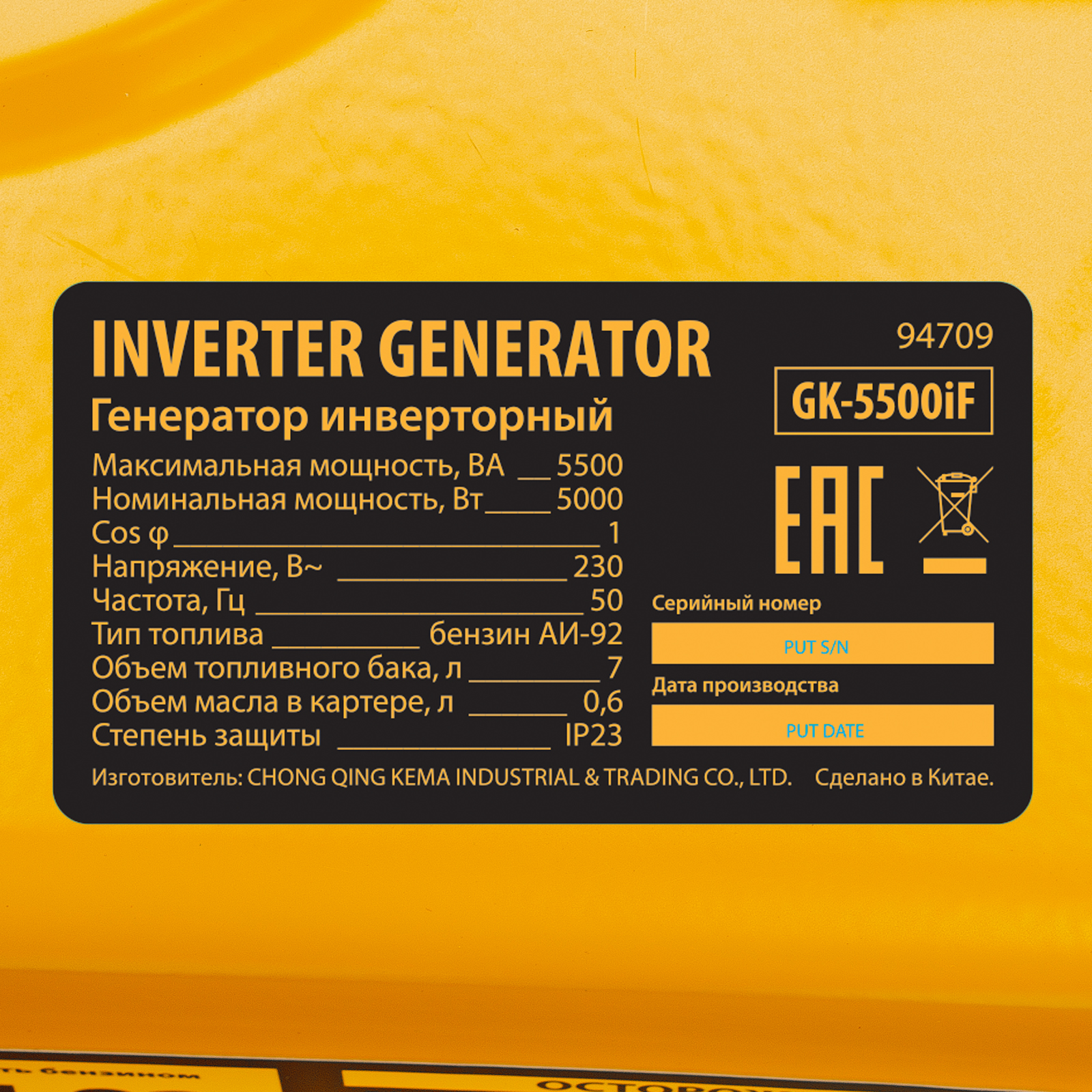 Генератор инверторный GK-5500iF, 5,5 кВт, 230 В, ручной старт DENZEL в Воронеже