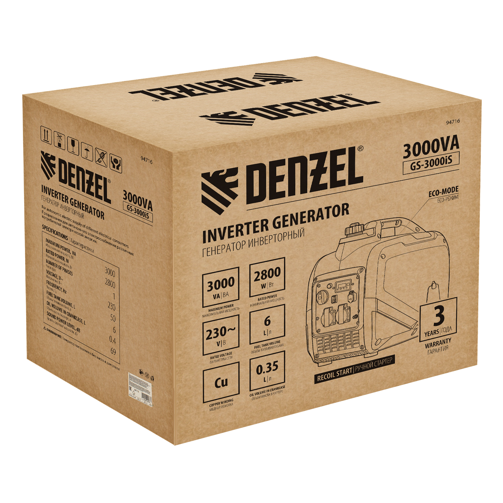 Генератор инверторный GS-3000iS, 3,0 кВт, 230 В, закрытый корпус, ручной старт DENZEL в Воронеже