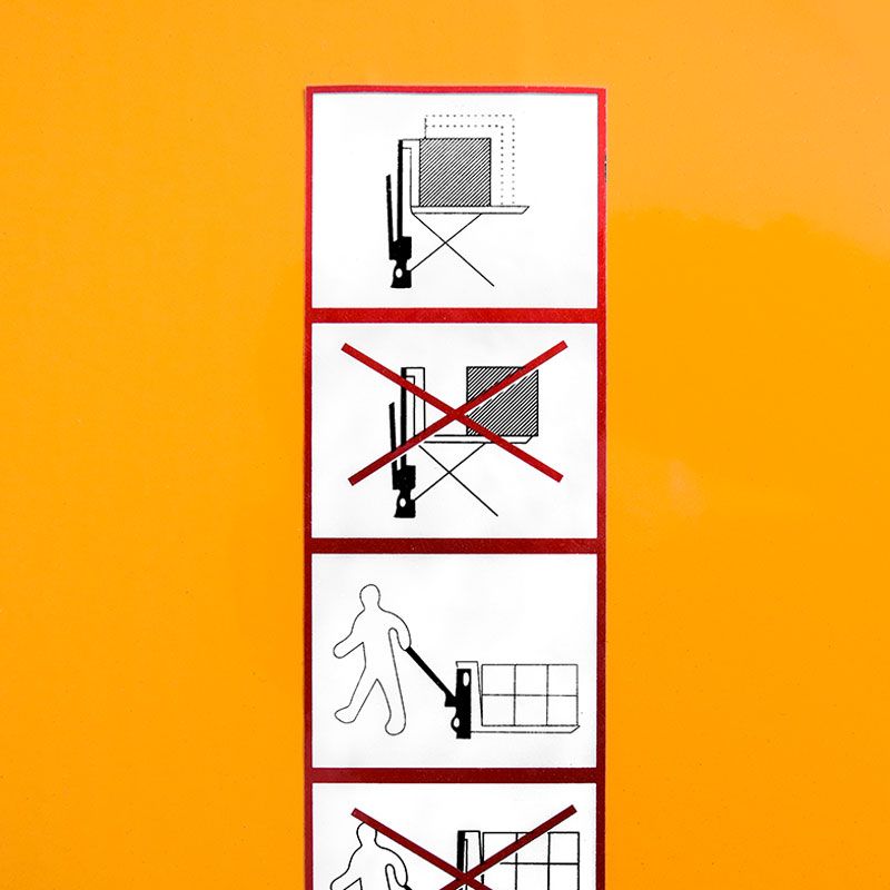 Благодаря телескопической конструкции гидроцилиндра снижены габариты и масса тележки, что значительно повышает удобство ее эксплуатации. Ручка со специальным покрытием делает управление тележкой комфортным в любое время года. При подъеме вил на высоту 400 мм на землю опускаются дополнительные опоры, препятствующие перемещению тележки и повышающие ее устойчивость.