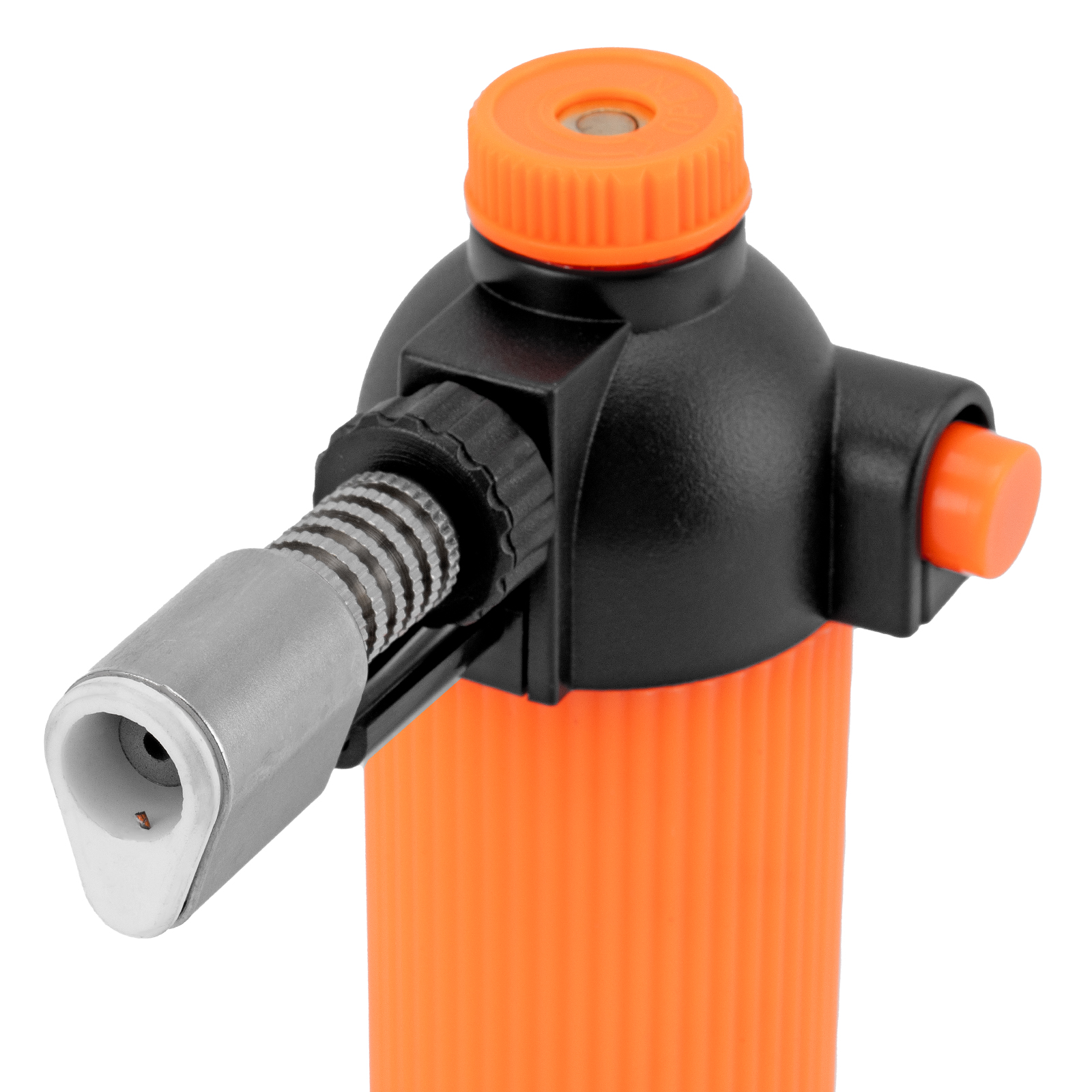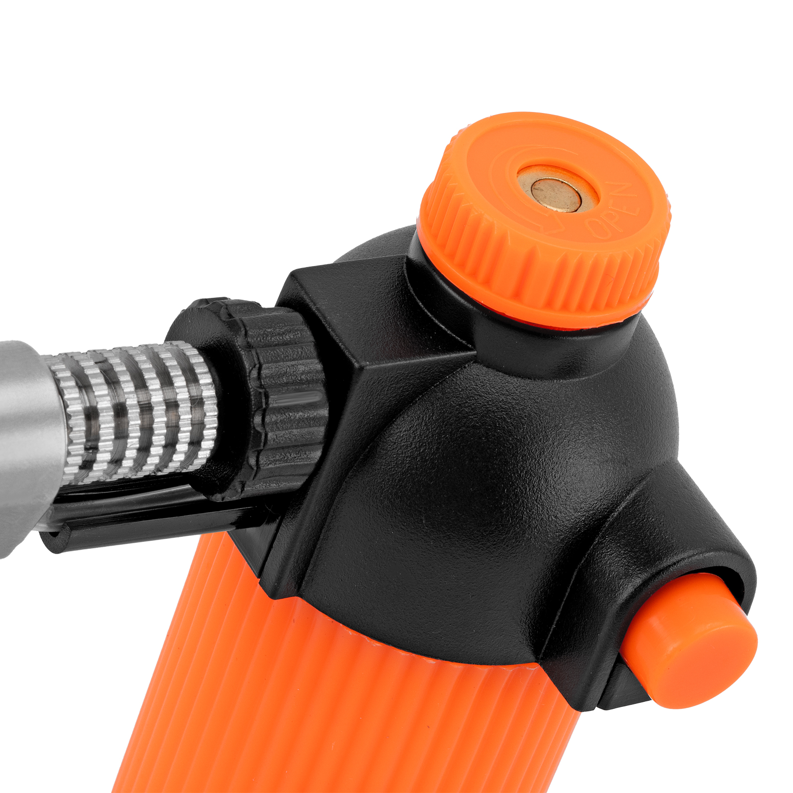 - Регулировка силы нагрева — поворотная ручка в верхней части горелки позволяет контролировать подачу газа.