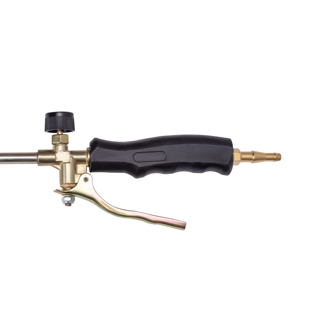 Кровельная газовоздушная горелка ГВ-1000Р — это приспособление для проведения ремонтно-строительных работ. Топливом является пропан-бутановая смесь. Применяется для сушки и нагрева панелей и форм, кирпичной кладки, расплавления битумного покрытия. Горелка оборудована вентилем и рычагом для регулировки расхода газа, чтобы обеспечить устойчивое пламя нужной конфигурации. Основные параметры горелки соответствуют требованиям ГОСТ 2091-91 «Горелки ручные газовоздушные инжекторные».РЫЧАГ ПОДАЧИ ТОПЛИВА: Специальный рычаг на рукоятке удобен при работе, особенно когда нужно сделать паузу во время рабочего процесса. При нажатии рычага струя пламени увеличивается, при отпускании – горелка переходит в режим дежурной дуги. И для возобновления работы горелку не нужно поджигать заново.БЕЗОПАСНОСТЬ РАБОЧЕГО ПРОЦЕССА: Кровельная газовоздушная горелка — надежное устройство, позволяющее производить качественные кровельные работы. Безопасна в использовании. Горелка прошла испытания и тестирования, подтверждающие её соответствие требованиям ГОСТа.ПРЕИМУЩЕСТВА:Рычаг подачи газа на рукояткеУдаропрочная рукояткаВысокая надёжностьБезопасность в использованииУлучшенный теплообмен
