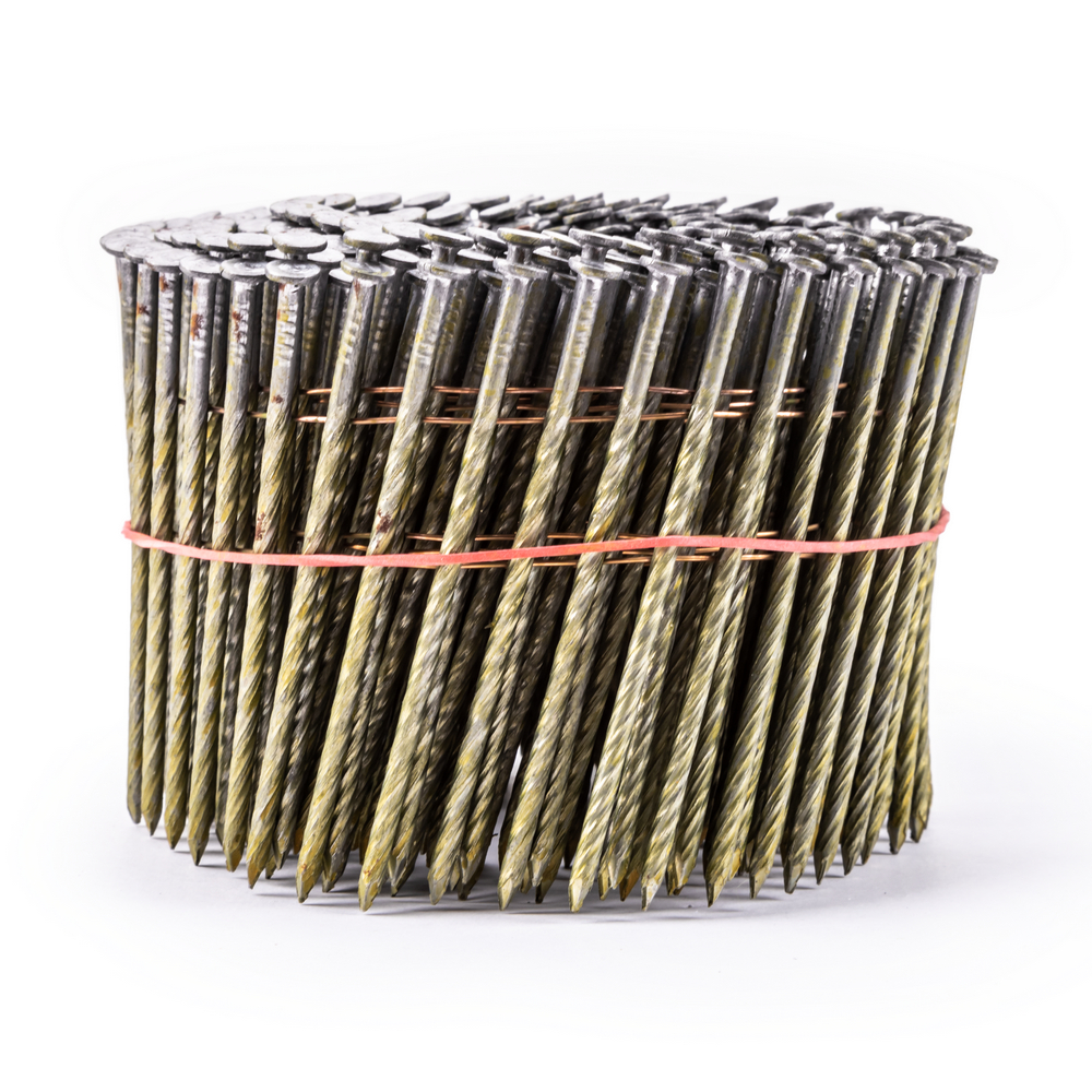 Гвозди барабанные с винтовой накаткой AERO C90 используются в строительстве, производстве поддонов и деревянной тары, производстве кабельных барабанов. Крепеж забивается с помощью нейлера или пневматического гвоздезабивного пистолета FoxWeld AERO C90 благодаря чему время на монтаж сокращается более чем в 3 раза. Тип гвоздей - CNW; Оснастка - C90; С винтовой накаткой - SCH; Диаметр шляпки - 6,5 мм; Cечение - 2,8 мм; Длина - 80 мм. Изделия выполнены из стали с цинковым покрытием, которое обеспечивает защиту от коррозии. Каждый гвоздь имеет винтовую накатку с нанесением клея-расплава, который при нагревании переходит из твердого состояния в жидкое, что увеличивает прочность скрепления. Поставляются в бобинной ленте в количестве 250 шт.