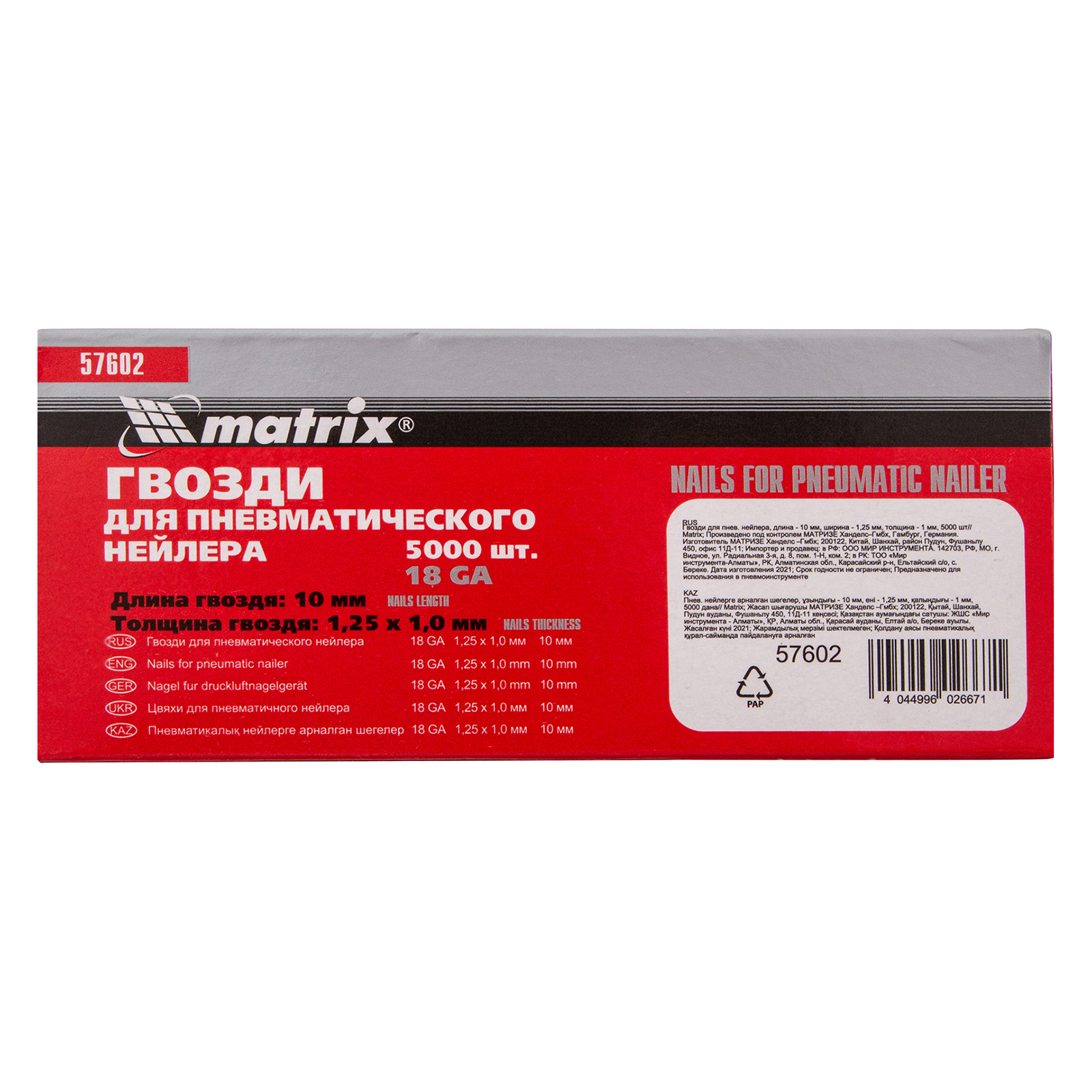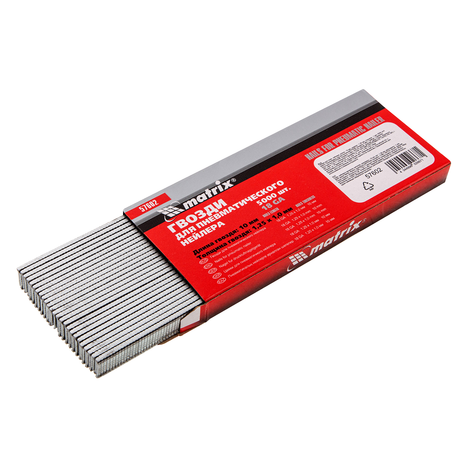 Гвозди для пневматического нейлера, длина 10 мм, ширина 1.25 мм, толщина 1 мм, 5000 шт Matrix в Воронеже