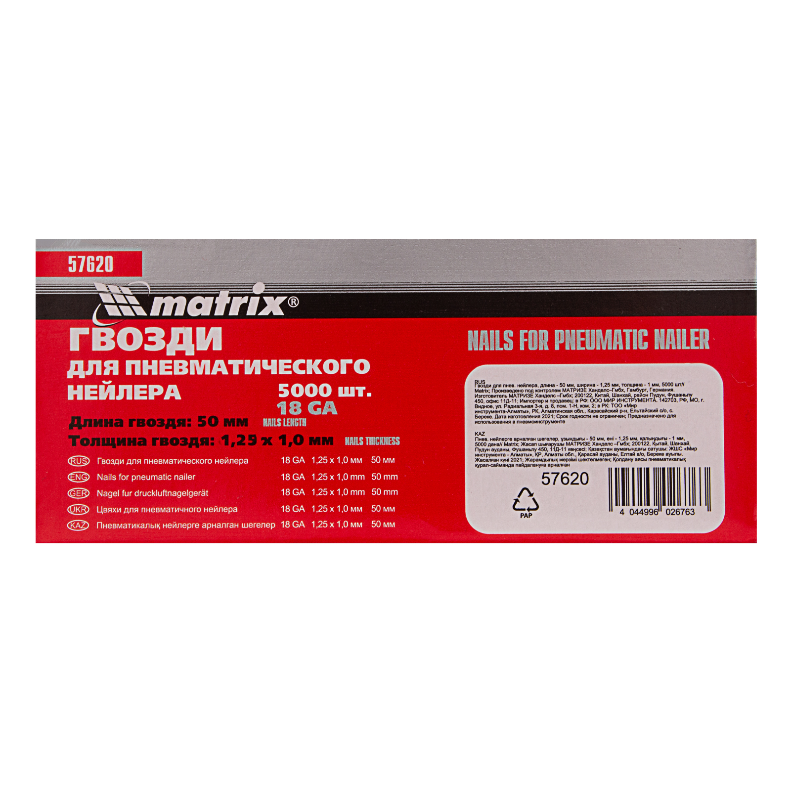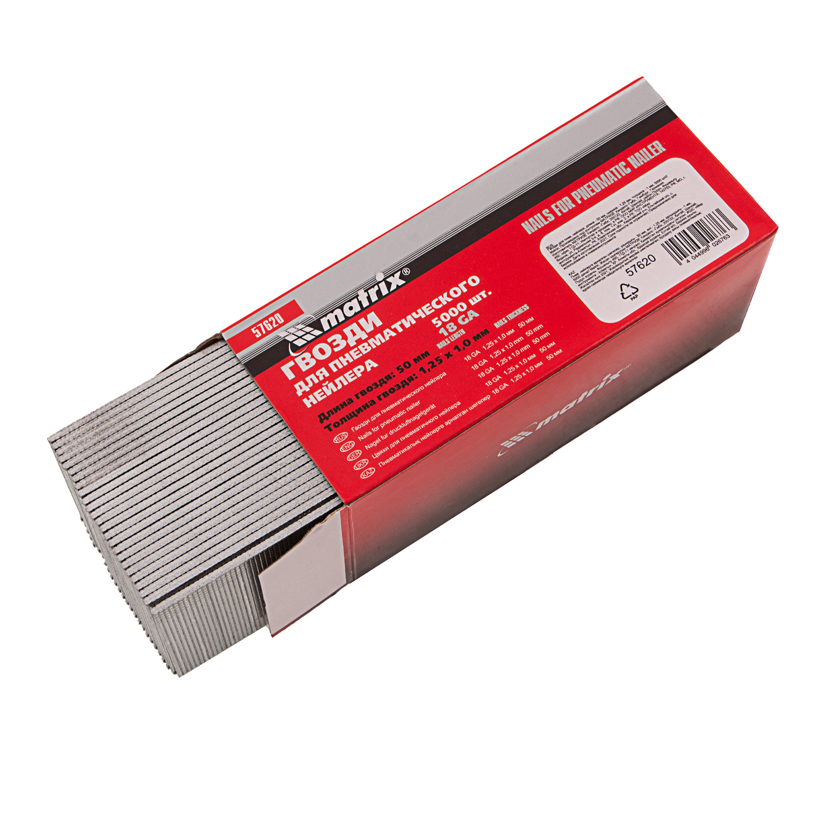 Гвозди для пневматического нейлера, длина 50 мм, ширина 1.25 мм, толщина 1 мм, 5000 шт Matrix в Воронеже
