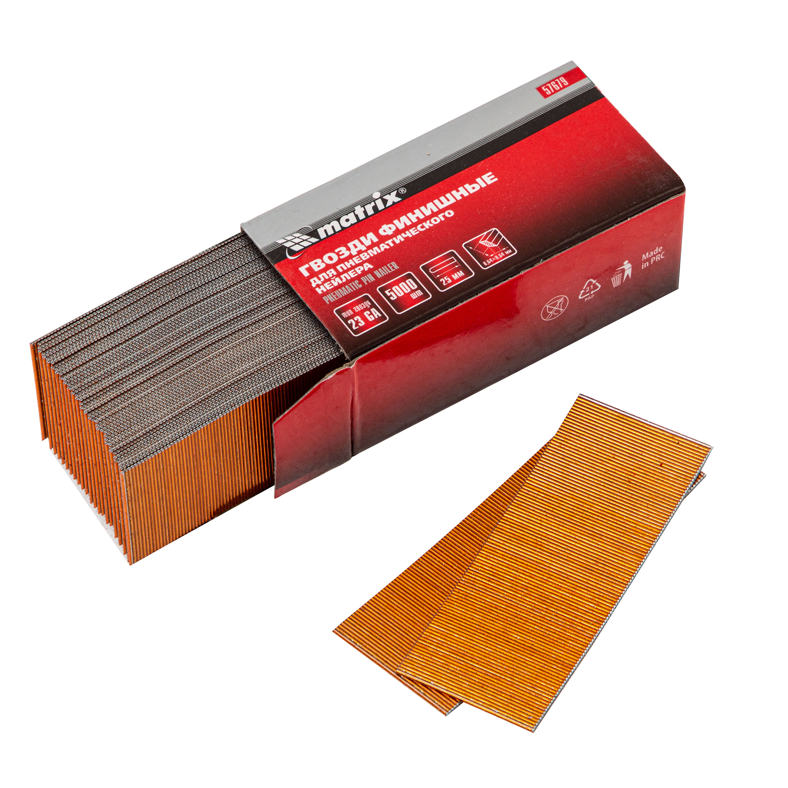 Гвозди финишные, (шпильки) 23GA для пневматического нейлера финишного D 0.64 мм, длина 25 мм, 5000 шт Matrix в Воронеже