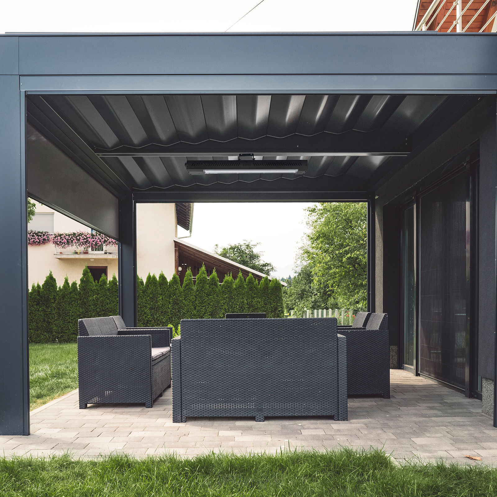 - Выбор зоны обогрева — конструкция кронштейна позволяет менять угол наклона обогревателя.