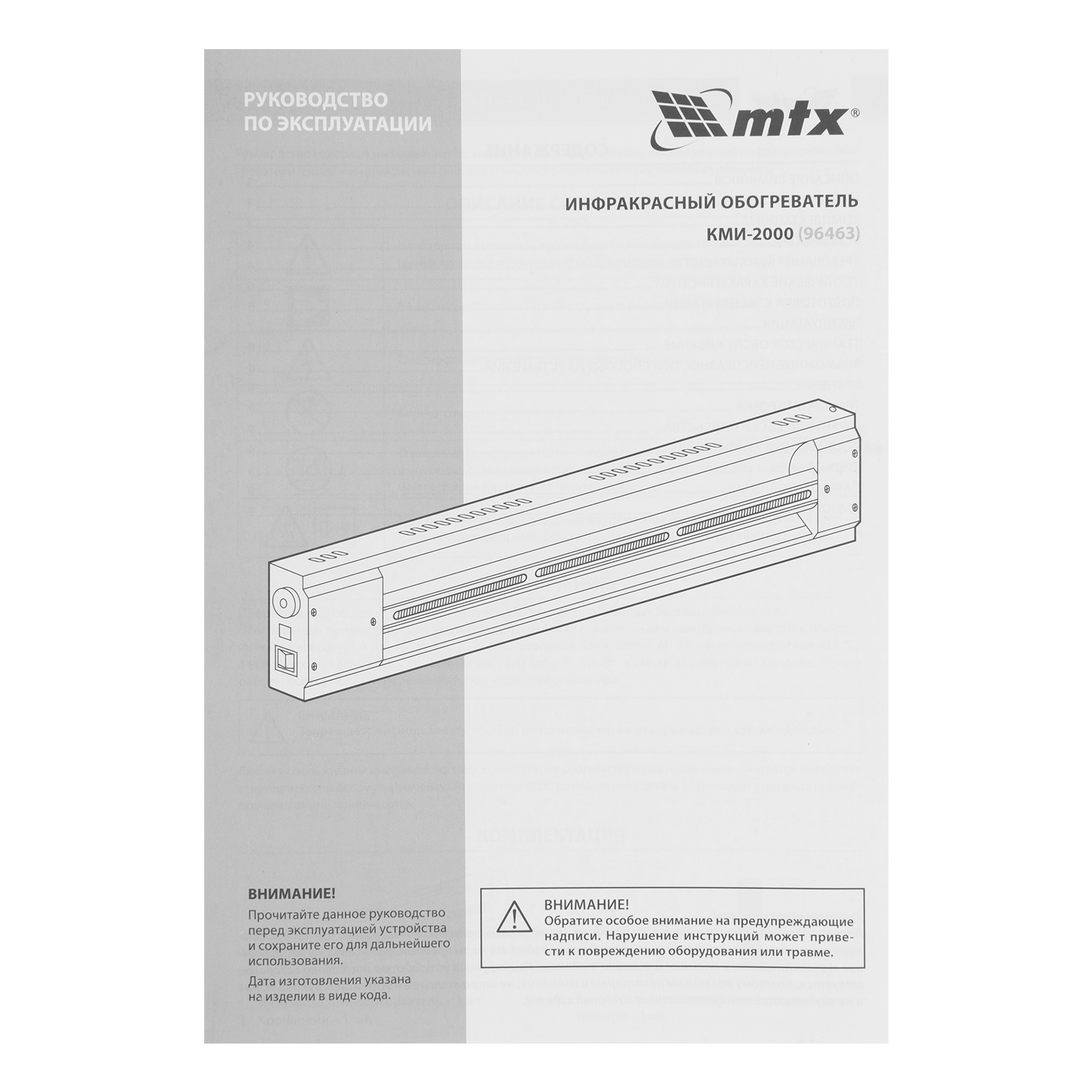 Инфракрасный обогреватель КМИ-2000, 230В, 2000 Вт, плавная регулировка мощности MTX в Воронеже