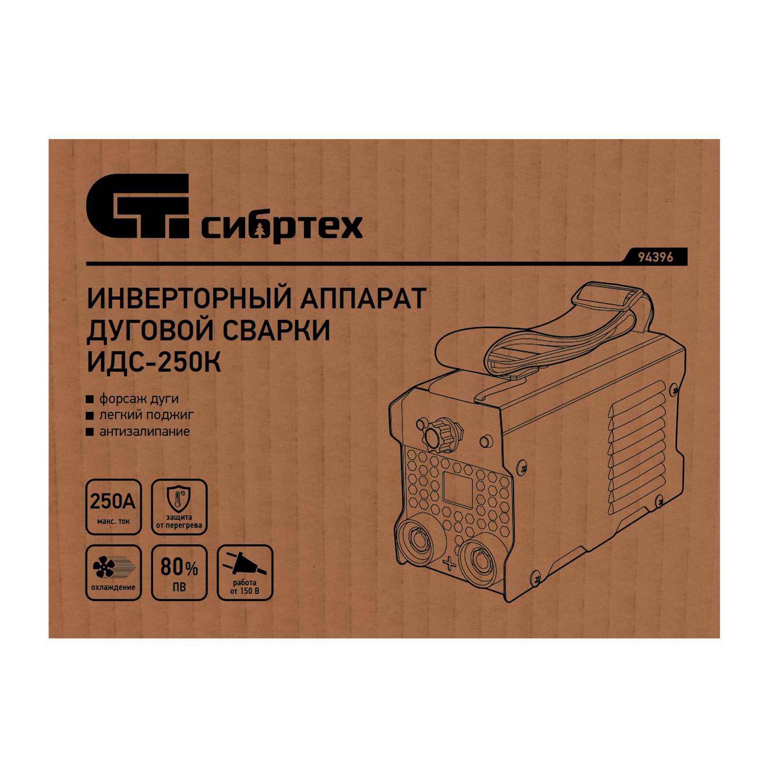 Инверторный аппарат дуговой сварки ИДС-250K, 250 А, ПВ 80%, диаметр электрода 1,6-5 мм Сибртех в Воронеже