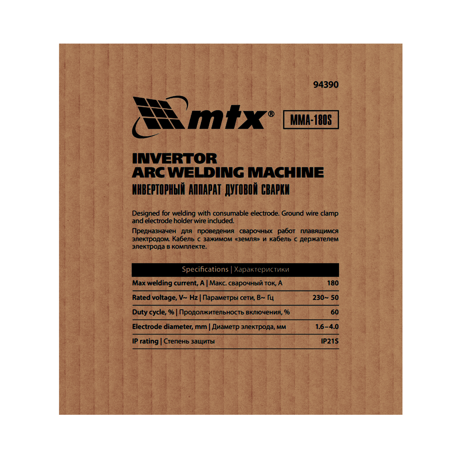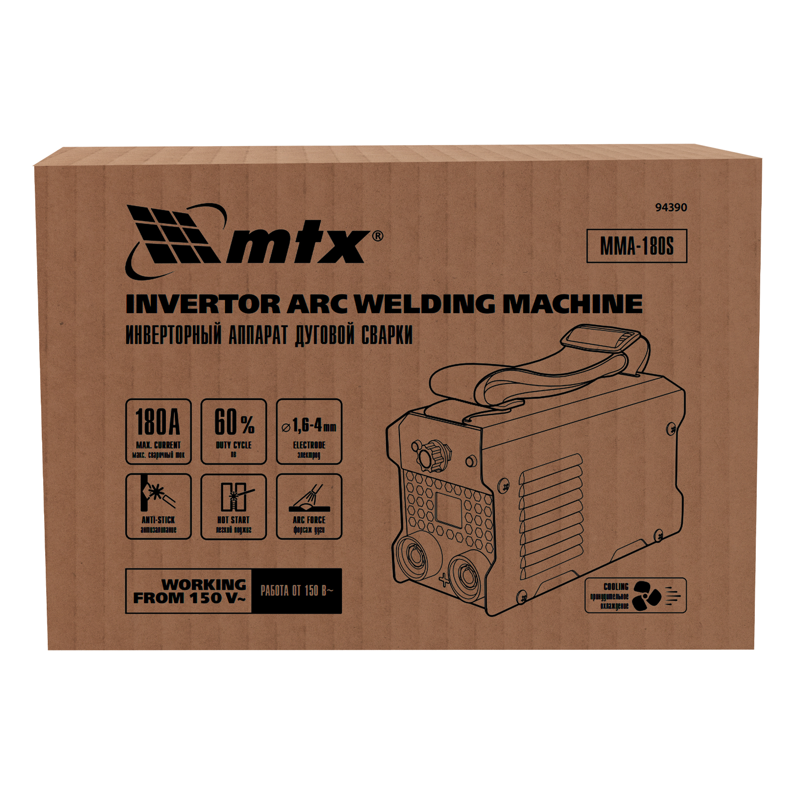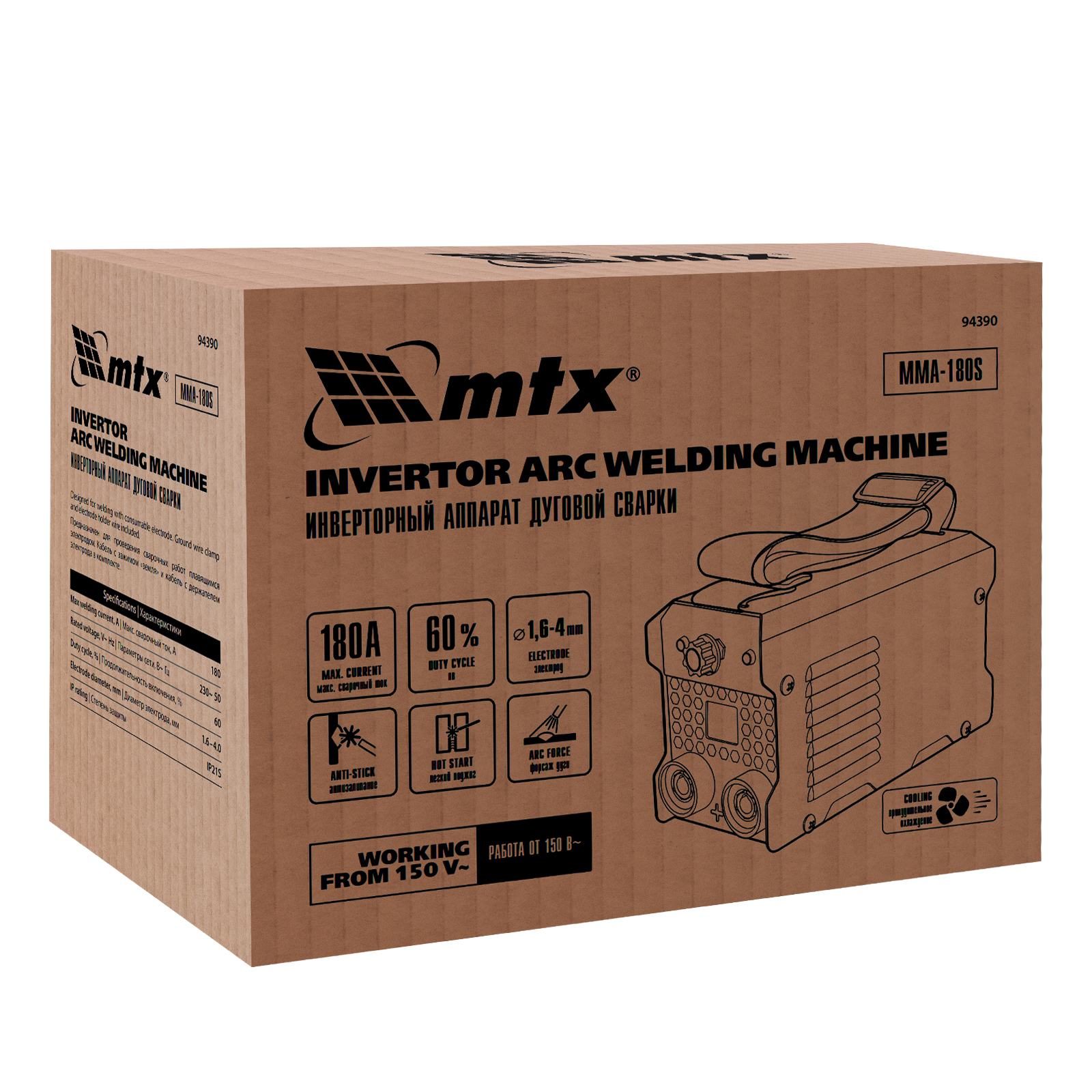 Инверторный аппарат дуговой сварки MMA-180S, 180 А, ПВ60%, диаметр электрода 1,6-4 мм MTX в Воронеже