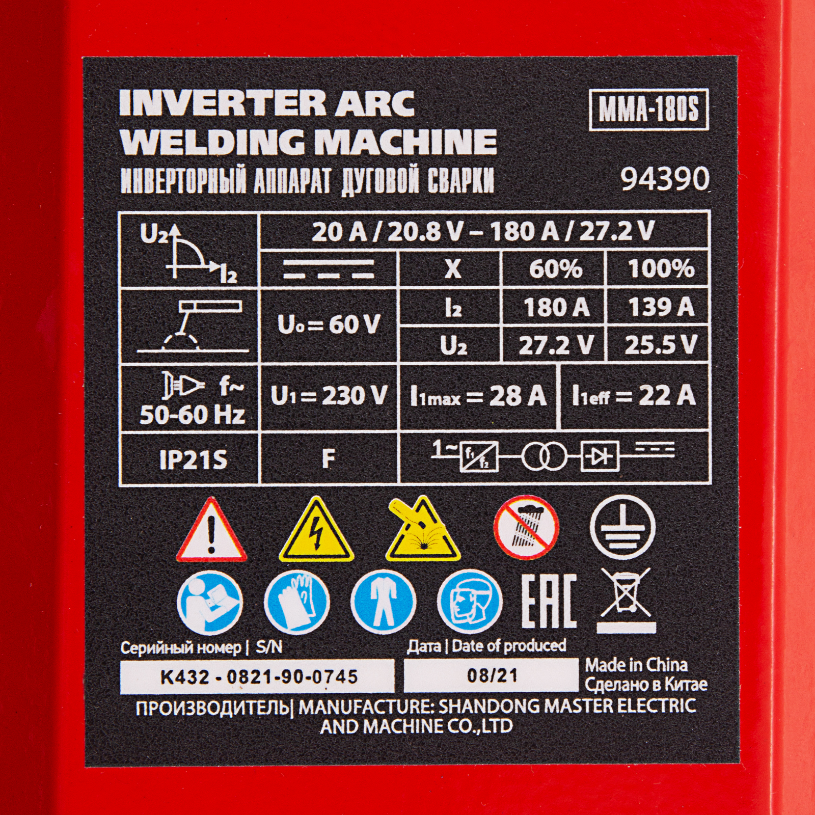 Инверторный аппарат MTX MMA-180S 94390 предназначен для дуговой сварки изделий из низкоуглеродистой стали с помощью штучных электродов диаметром 1,6-4 мм. Сварочный ток плавно регулируется в диапазоне 20-180 А, продолжительность включения (ПВ) на максимальном токе составляет 60%. Аппарат позволяет эффективно выполнять поставленные задачи даже при нестабильном напряжении. Оптимально подходит для использования в частных хозяйствах, будет полезен сотрудникам ЖКХ и работникам аварийно-ремонтных бригад. Отличается низким уровнем шума.