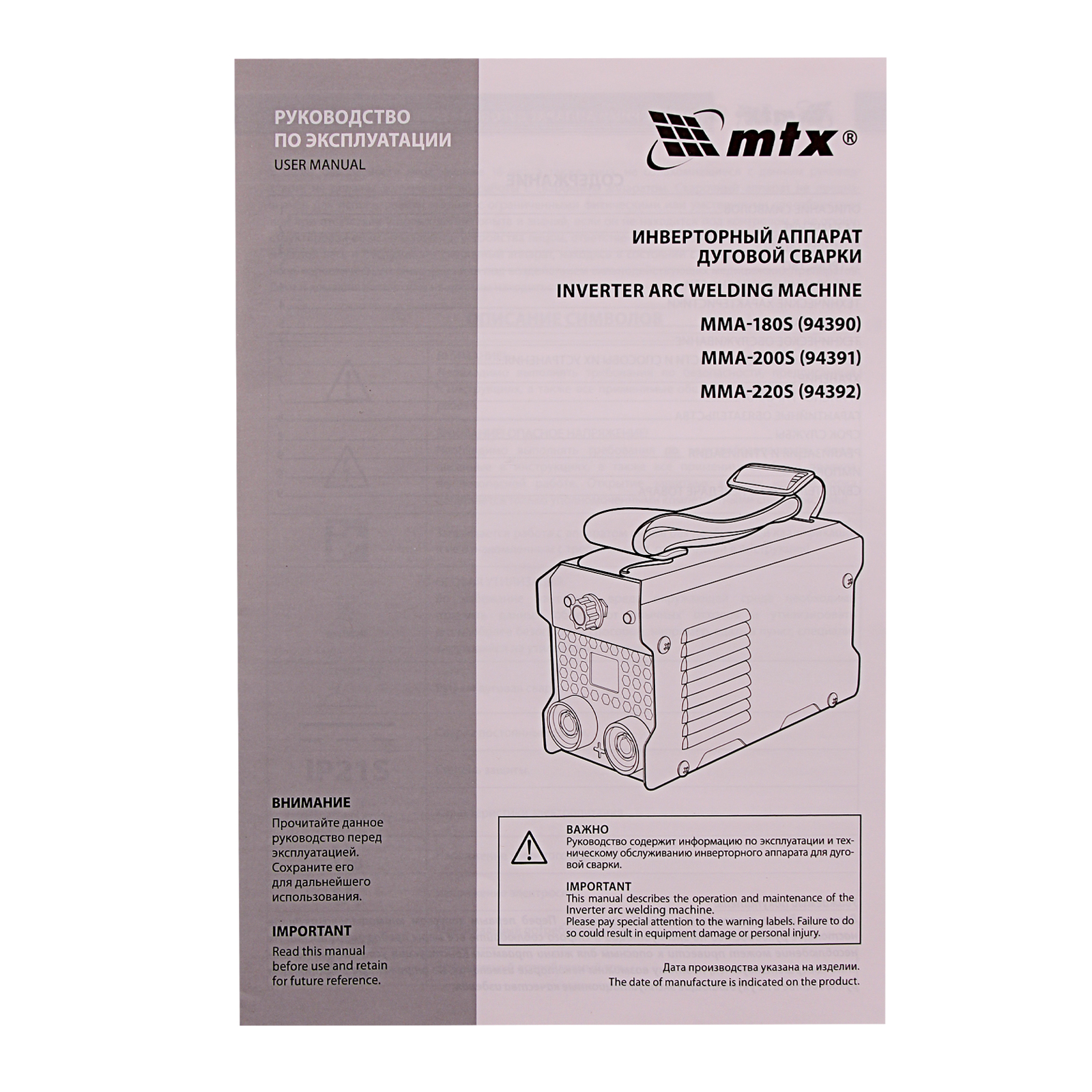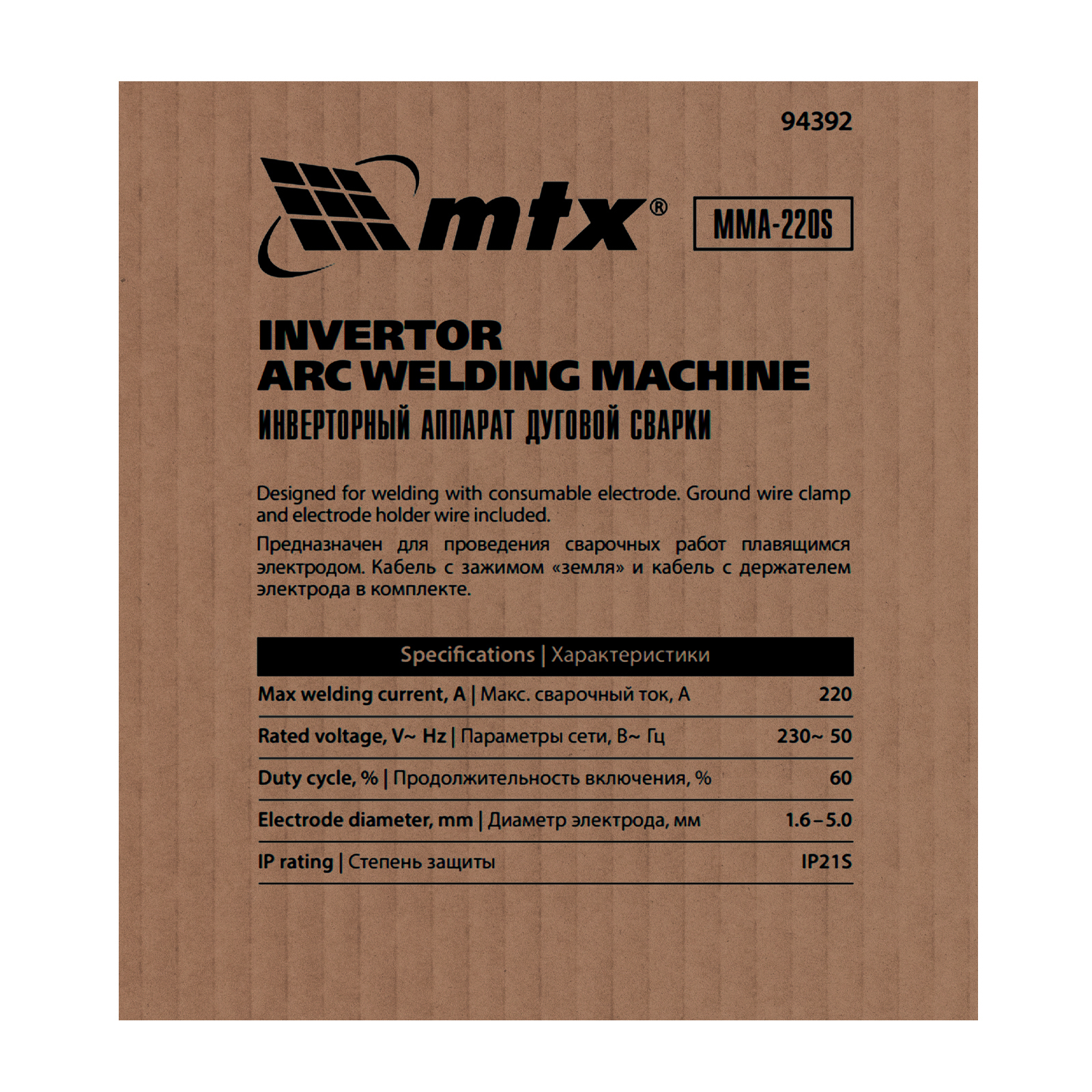 Инверторный аппарат дуговой сварки MMA-220S, 220 А, ПВ60%, диаметр электрода 1,6-5 мм MTX в Воронеже