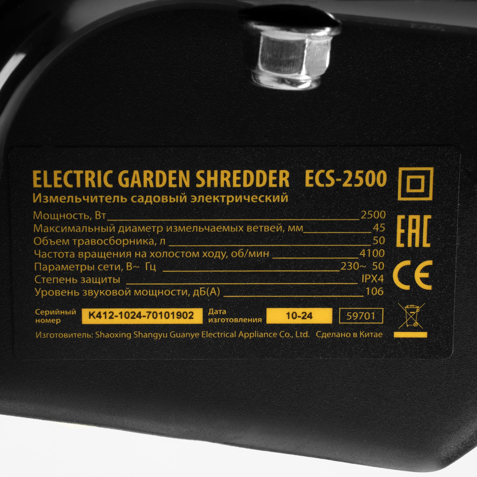 Измельчитель садовый электрический ECS-2500, 2500 Вт, 45 мм Denzel в Воронеже