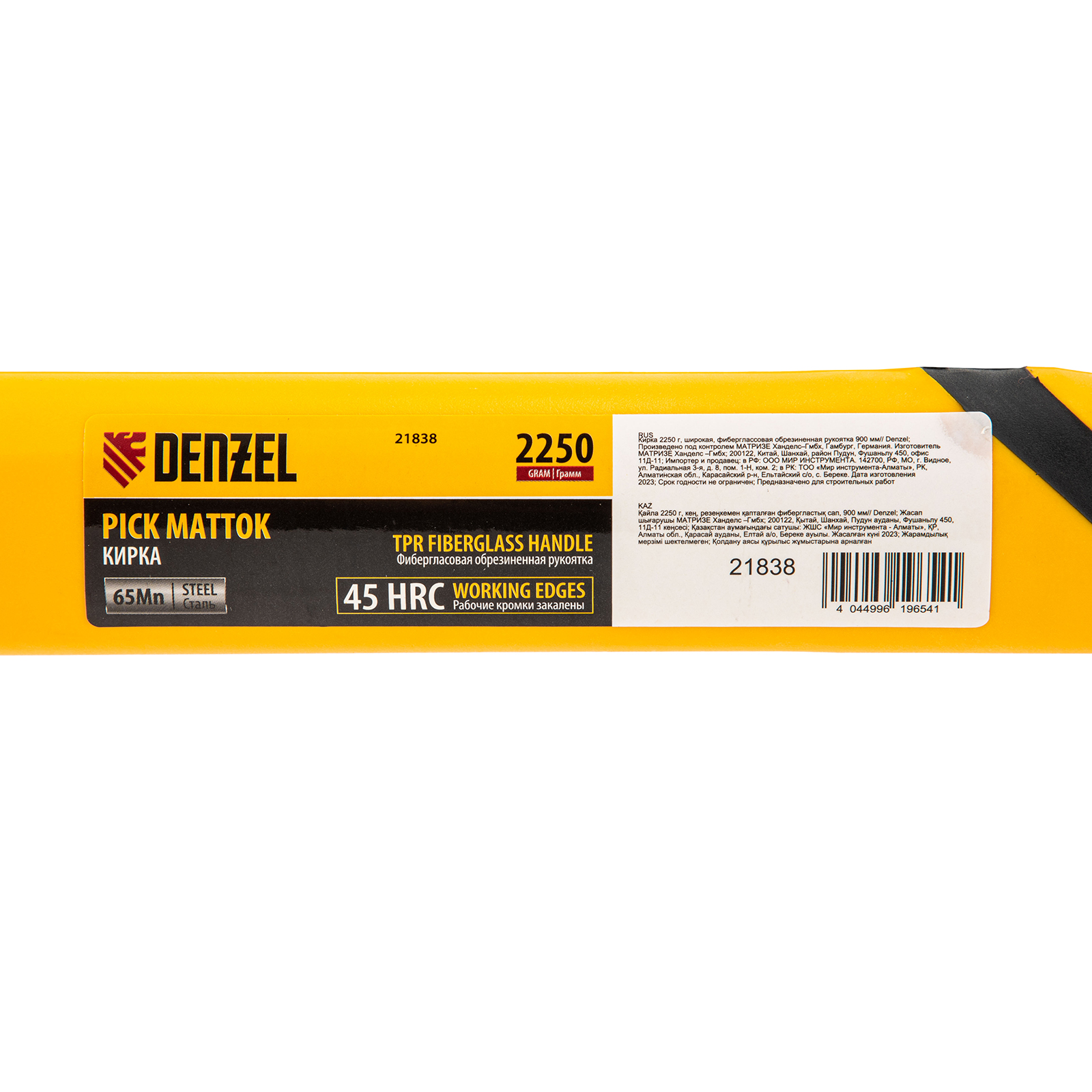 Кирка Denzel 21838 длиной 900 мм, с широкой рабочей частью, головой весом 2250 г и фибергласовой обрезиненной рукояткой, предназначена для работы по камню, рыхления каменистого, пересохшего земляного и глиняного грунта. Может использоваться для разрушения старой кирпичной кладки и колки льда. Инструмент будет полезен на строительной площадке и дачном участке.