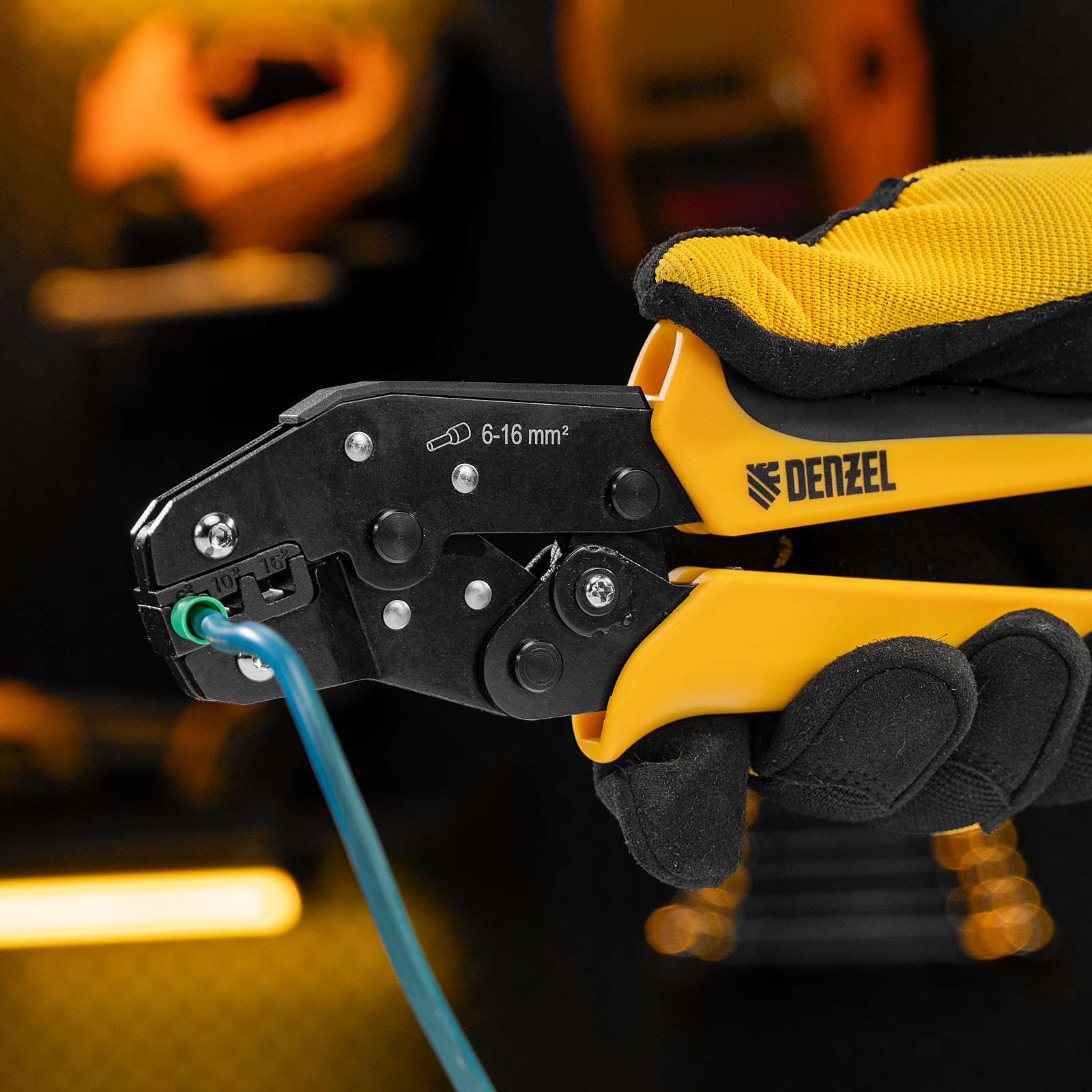 Клещи Denzel 17744 предназначены для обжима наконечников штыревых втулочных НШВ, НШВИ, НШВИ-2 сечением 6-16 мм². Двухрычажная передача усилия сжатия позволяет увеличить эффективность работы без дополнительный усилий мастера. Инструмент пригодится частным и профессиональным мастерам при проведении электромонтажных работ.