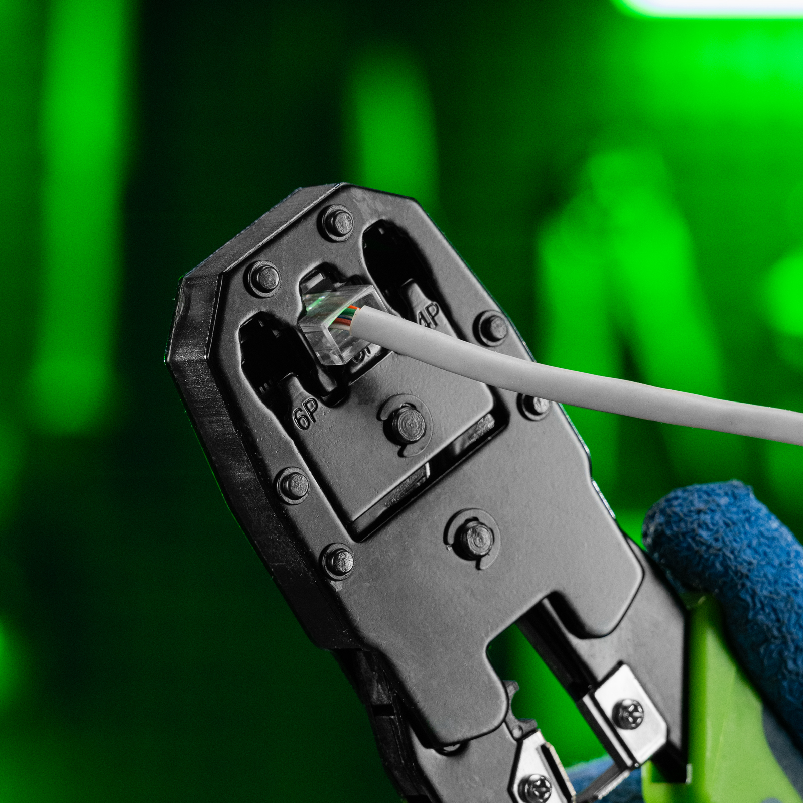- Продуманная комплектация — к клещам прилагается специальный инструмент для монтажа UTP/STP кабеля.