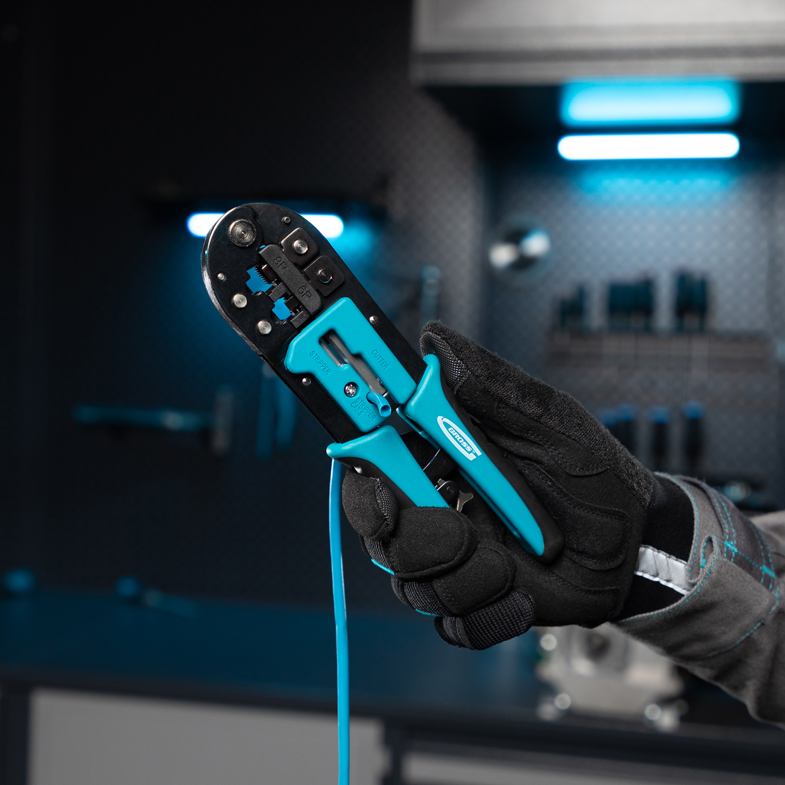 Клещи Gross 17719 предназначены для обжима телефонных и компьютерных клемм наиболее популярных типоразмеров RJ45, 8P и RJ11/12, 6P. Пригодятся частным мастерам и профессионалам для подключения компьютеров и телефонов к сети.
