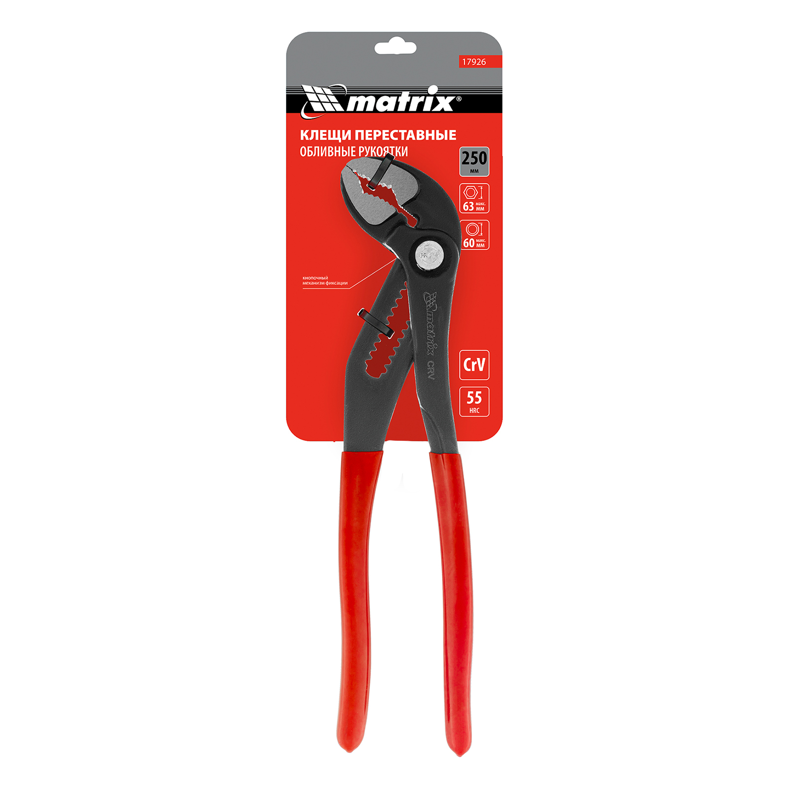 Клещи переставные 250 мм, кнопочный механизм, хром-ванадий, обливные рукоятки Matrix в Воронеже