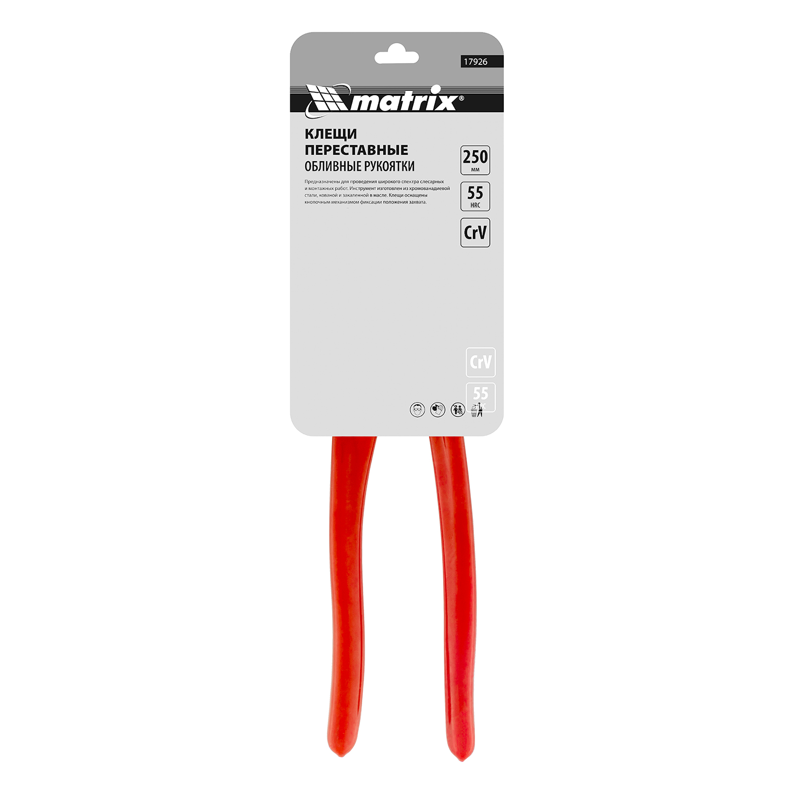 Переставные клещи Matrix 17926 длиной 250 мм, выполненные из хромованадиевой стали, с кнопочным механизмом и обливными рукоятками, используются для проведения монтажных и слесарных работ. Универсальный инструмент заменяет ключи различных размеров и применяется для фиксации заготовок, откручивания гаек, зажима и удержания труб диаметром до 60 мм.