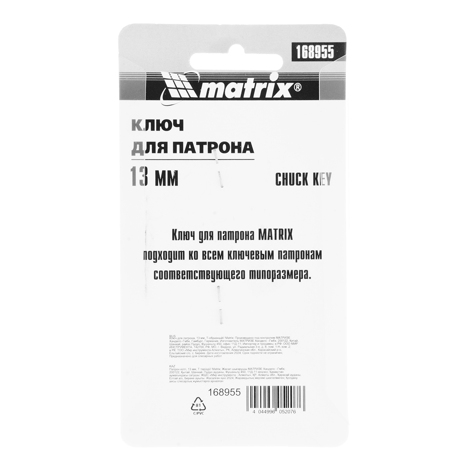 Ключ для патрона, 13 мм, Т-образный Matrix в Воронеже